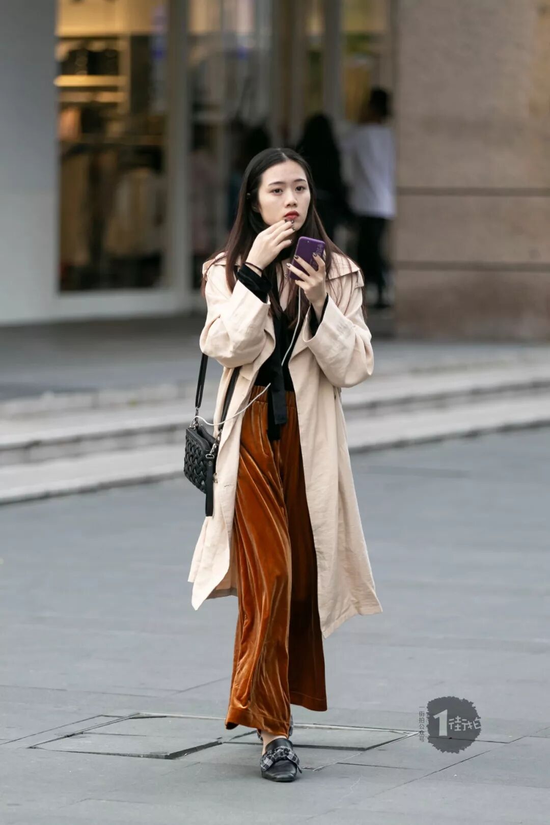比較優雅的風衣搭配,燈芯絨的褲子原來可以和風衣這麼配。可以試試哦~