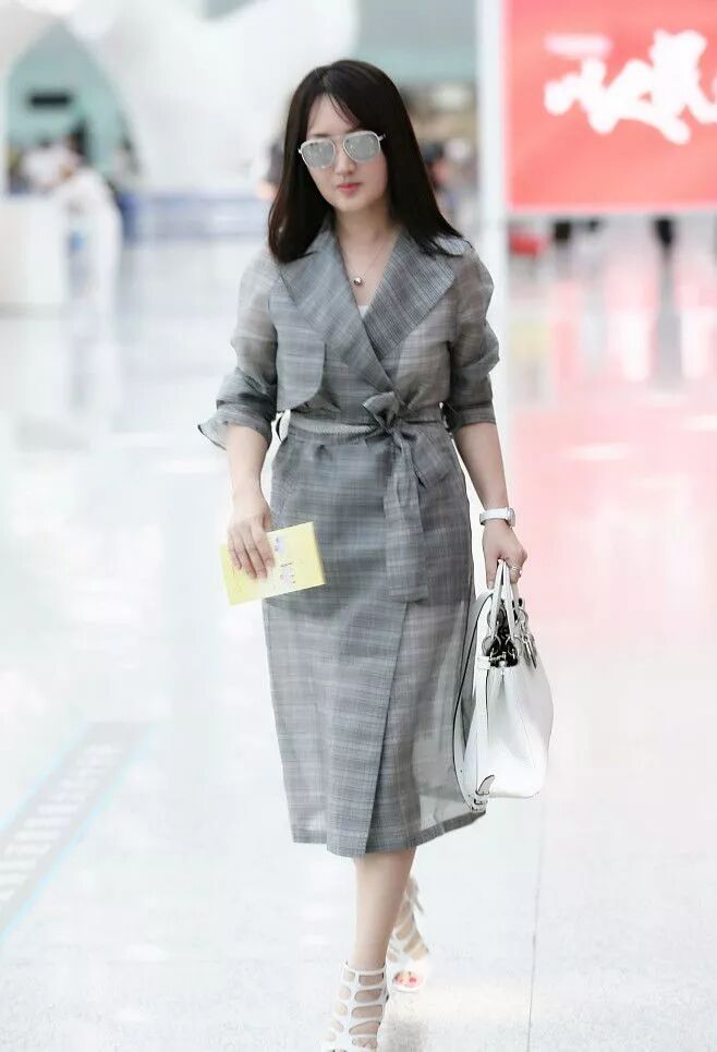 之前在機場楊鈺瑩也穿了這條風衣裙,不過很尷尬的是,兩個人穿出了不同的效果呢,她怎麼穿成了中長裙啊,看來身高真的很重要啊。