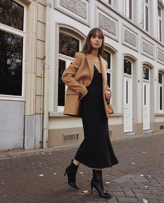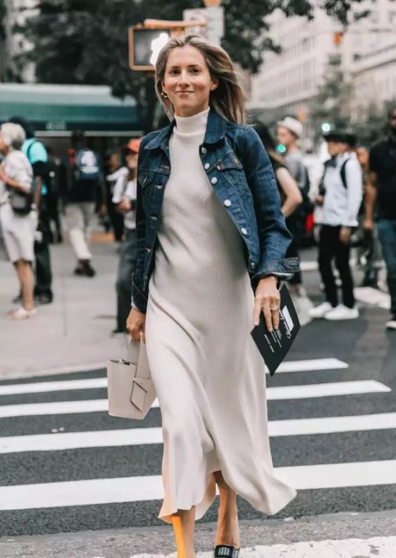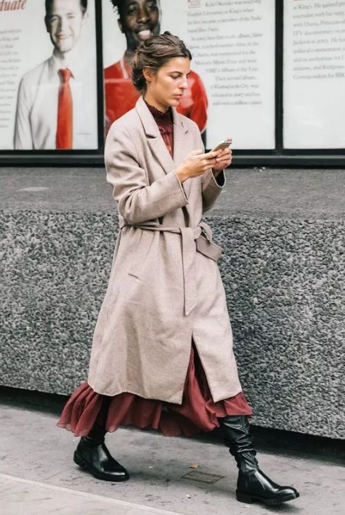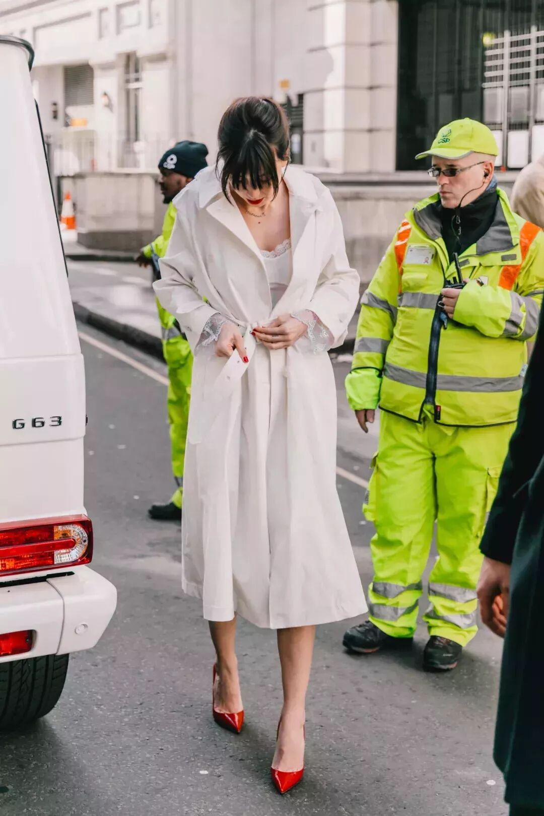 而且因為吊帶一類面料輕薄絲滑,而秋冬外套又非常厚重保暖,兩者竟然mix出非常奇妙的好看!