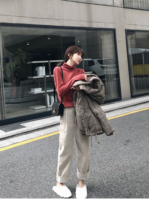 而這兩年流行的高領針織,如果你選擇一款黑色的,搭配秋冬的外套,簡直氣質到不行!