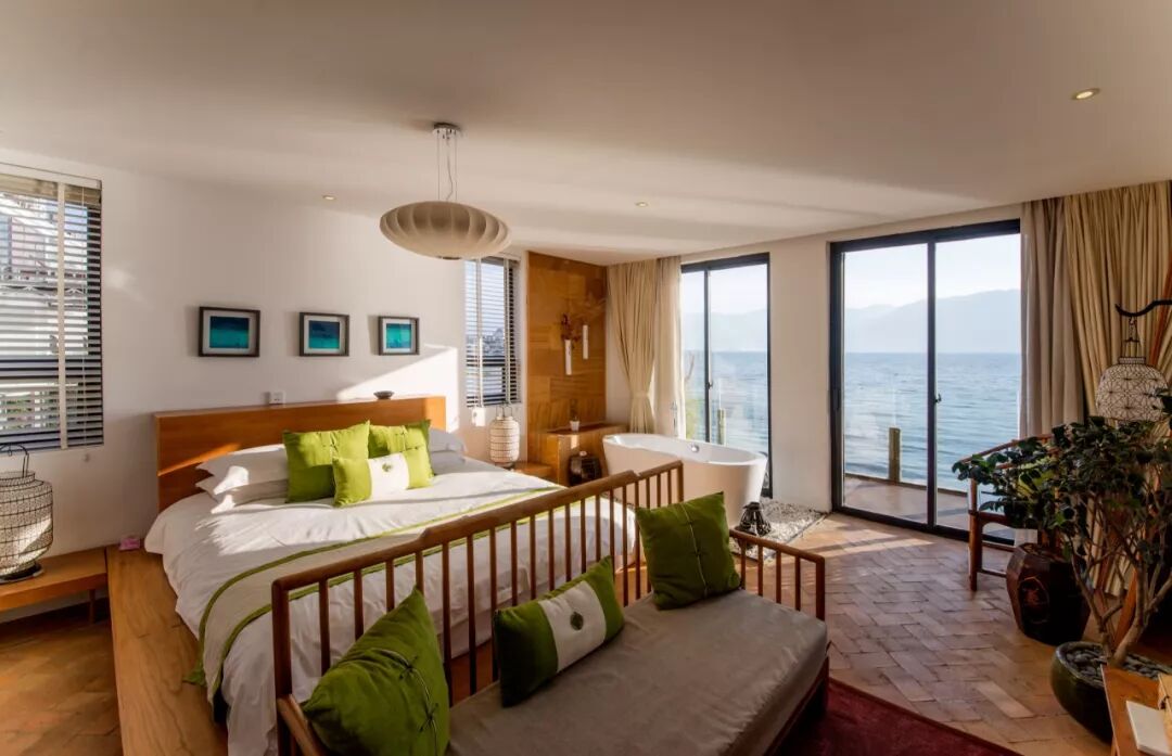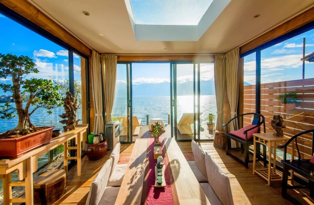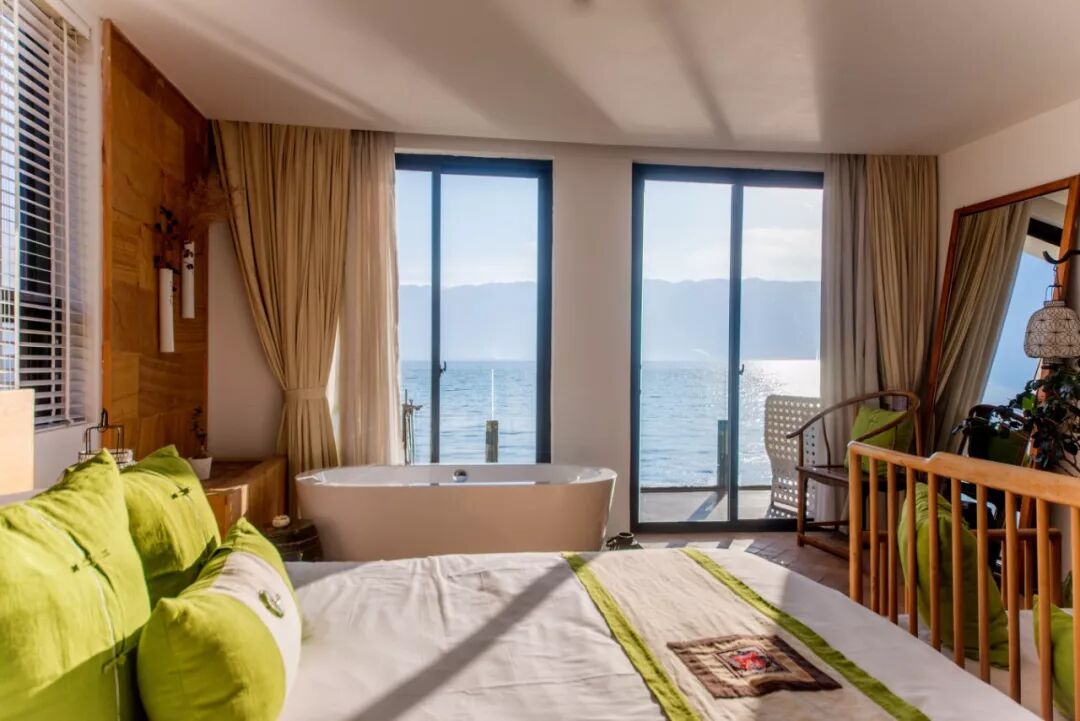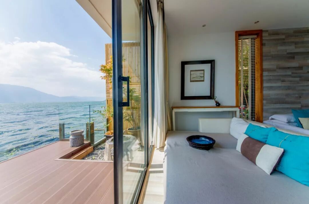 公區可觀海算是沒有辜負這好景,能將這美全部收入房中才算是發揮極致了。水明漾一共9個房間,全為海景房,大大落地玻璃窗將蒼山洱海的景致全部框成一幅天然畫卷,為室內空間增添了一抹迷人的色彩。