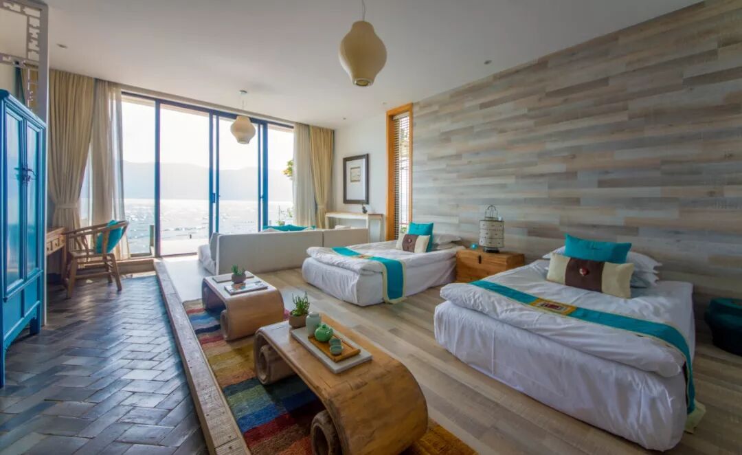 二樓的套房,最適合享受這不被打擾的海邊。寬敞的客廳加臥房,絕對是二人世界的最佳場所,帶上自己的愛人一起吧。窩在素色的沙發上相對不言都是一種浪漫,小陽台上觀海聽風來杯紅酒都別有一番風味,睡前別忘了在臨窗的浴缸泡一個舒適的澡,整夜好眠。