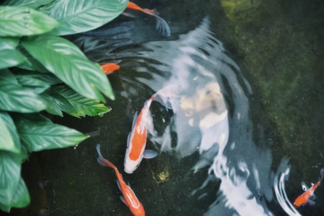 往里走去才發現因一時之喜錯過的一樓與二樓中間連接著多功能區與咖啡吧的小天井,魚兒在水池中慢悠悠的遊著,綠植穿過二樓投下斑駁印記,是安於此刻的靜謐。