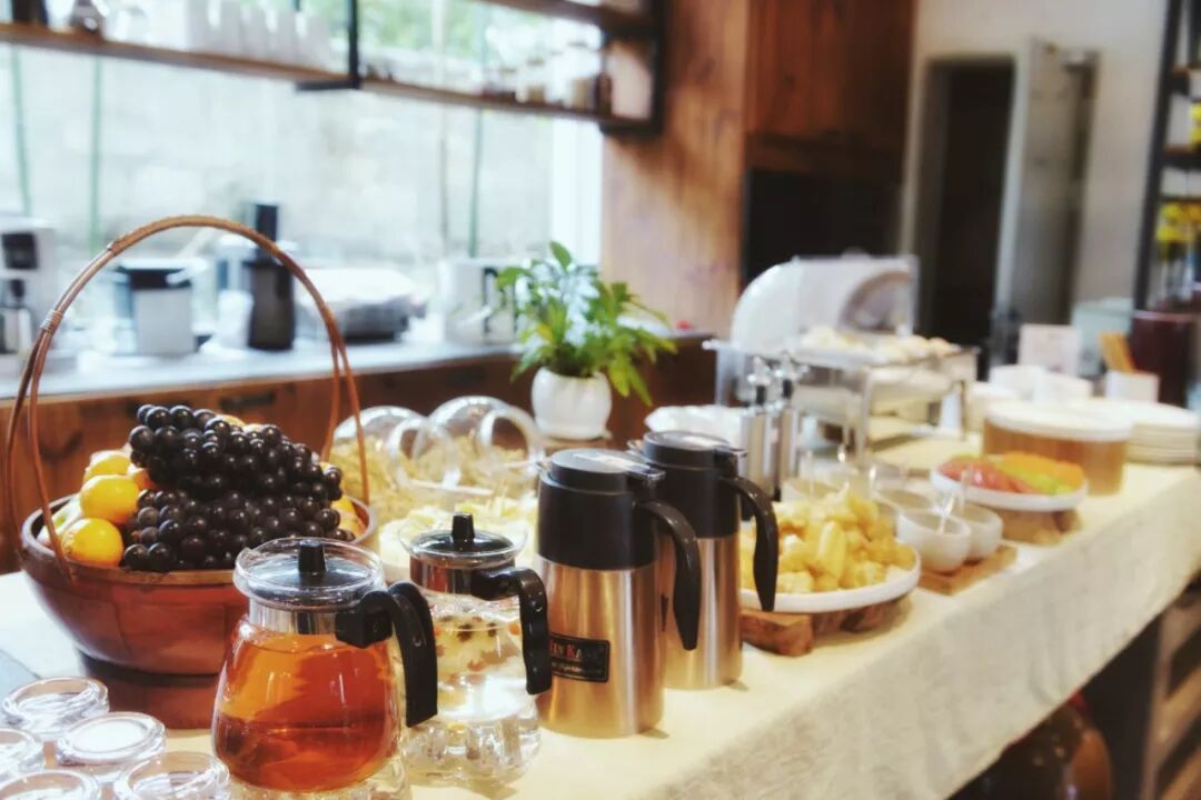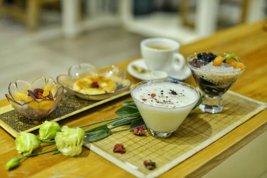 若是下午抵達,也不怕沿途勞累,水明漾已經在集餐廳、茶吧、書吧一體的多功能區備好下午茶,雖是免費卻一點也不含糊,品種多樣:純手工點心、雲南滇紅普洱茶、自制甜點、酸奶、應季水果等……