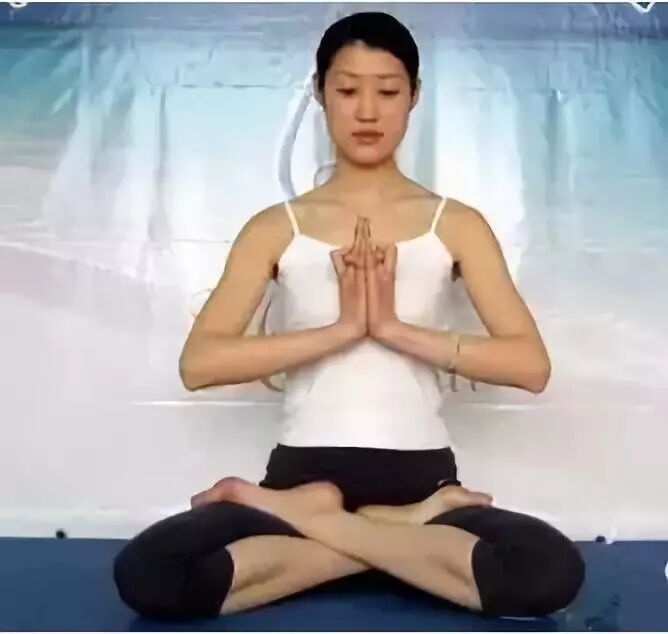 坐在地上,墊一個小墊,便於穩定,兩腿向前伸直;彎右小腿,把右腳緊頂在放在左大腿內側;彎左小腿,把左腿放在你的右大腿上面;肩背正直,下頜內收,兩手相疊,拇指相對放在腿上;以此姿勢坐著,可以10分鐘,20分鐘遞增,患坐骨神經痛的和骶骨毛病的不適合做這個練習。