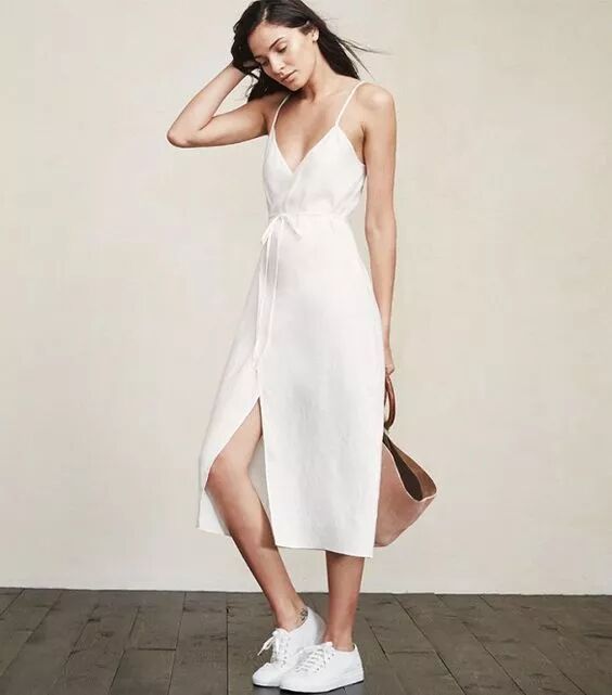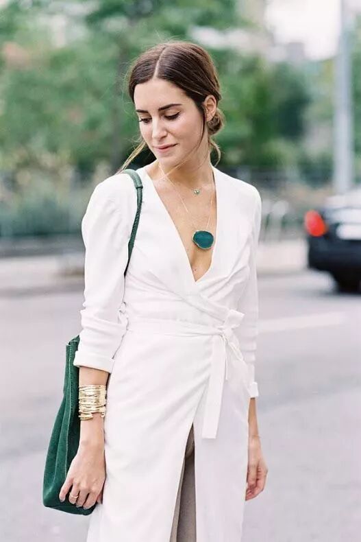 集合了V領、收腰、開叉等多個修身功效的裹身裙今年非常流行,碎花款式的穿多了?試試看乾淨的白色吧,效果更慵懶更隨性。