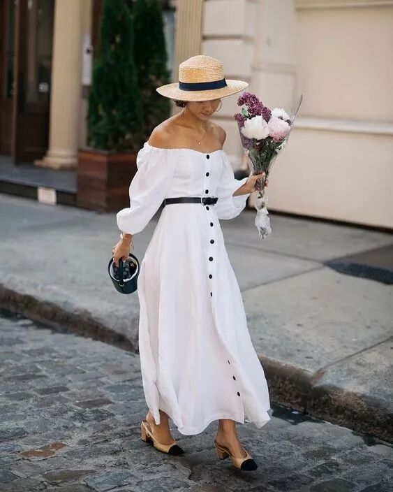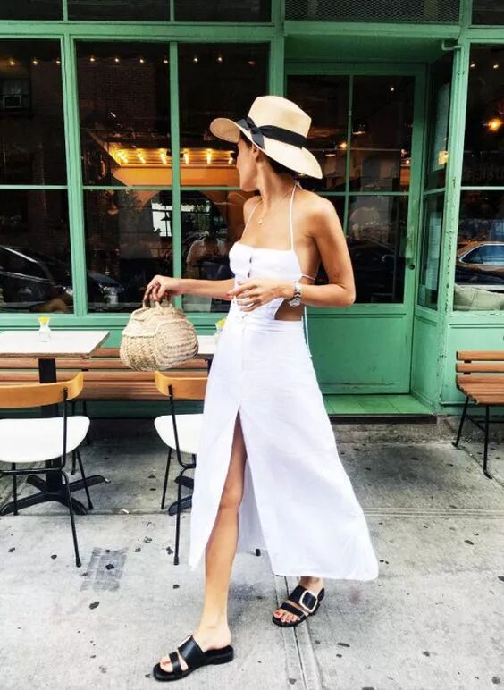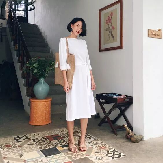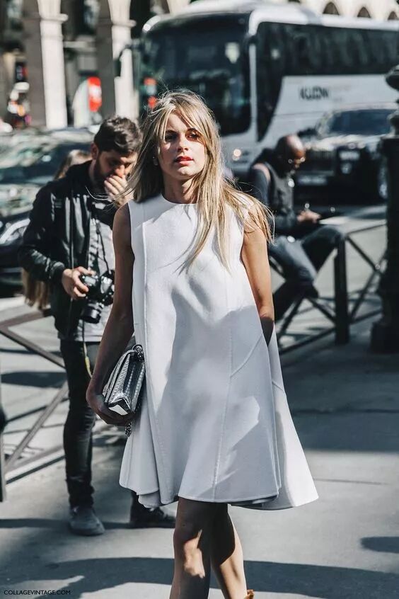 如果你不想嘗新,只想保留小白裙本身清爽甜美的風格,記住幹乾淨淨地單穿就足夠美了,配上一對簡約露出腳背的帶子鞋就ok。