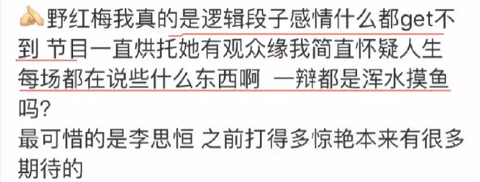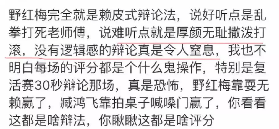 而且覺得她在《奇葩說》里就是渾水摸魚,辯論毫無邏輯。