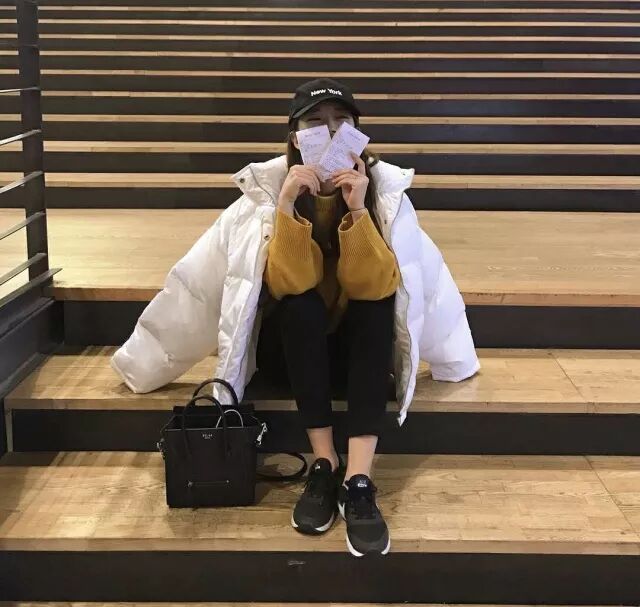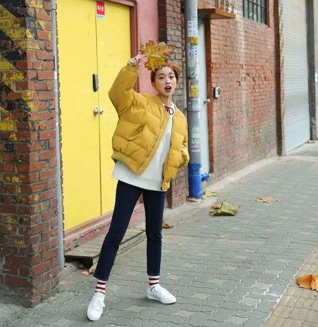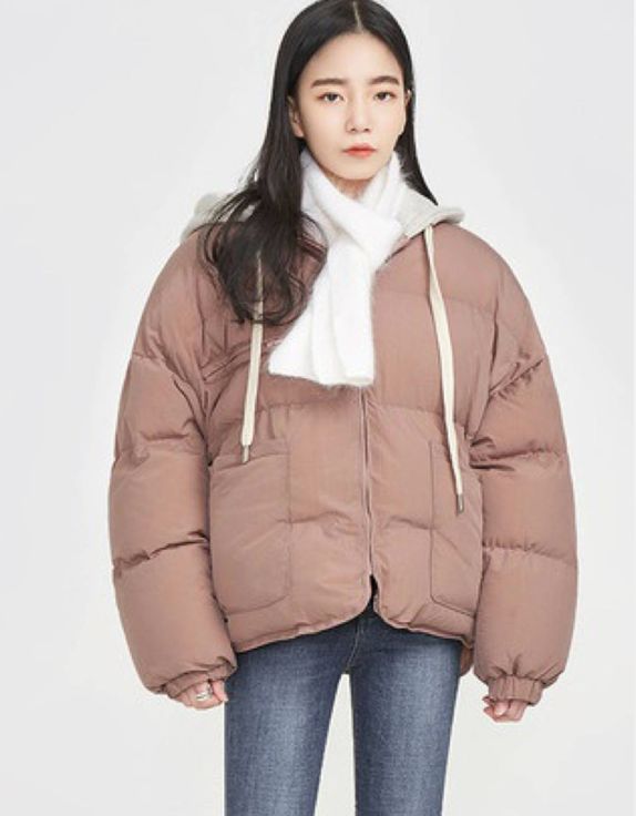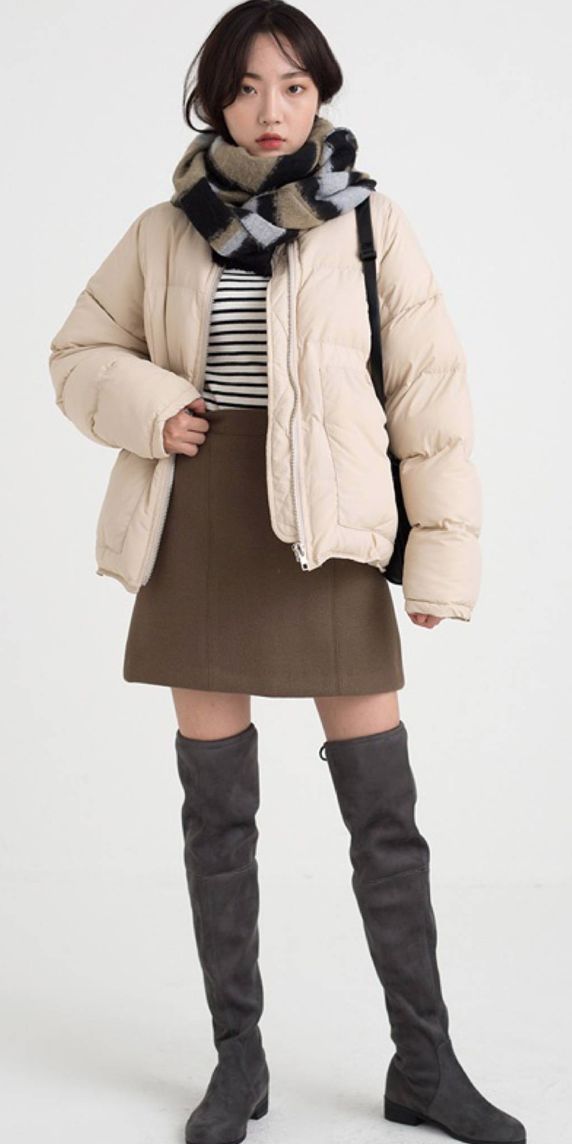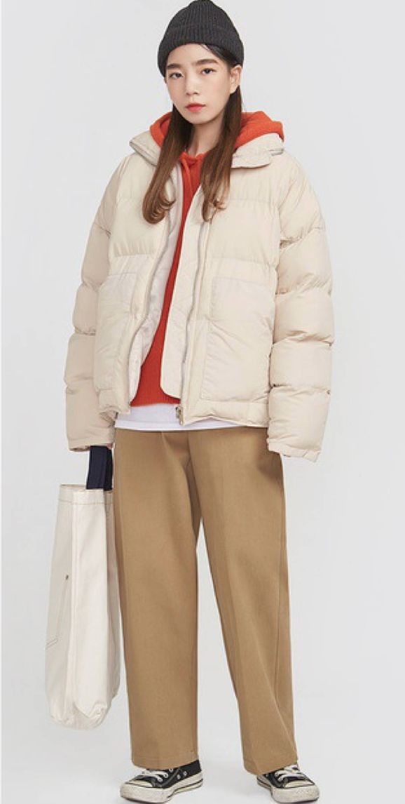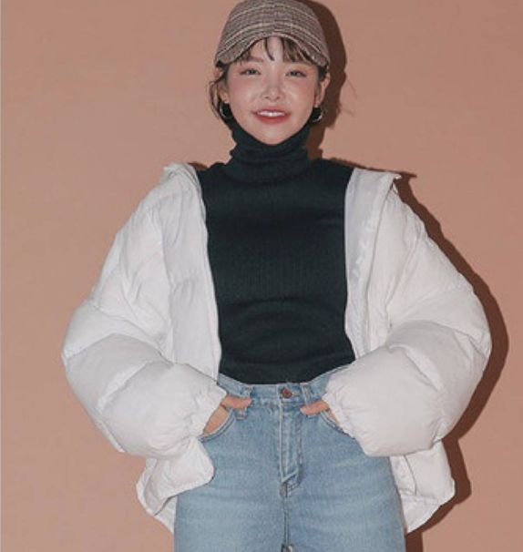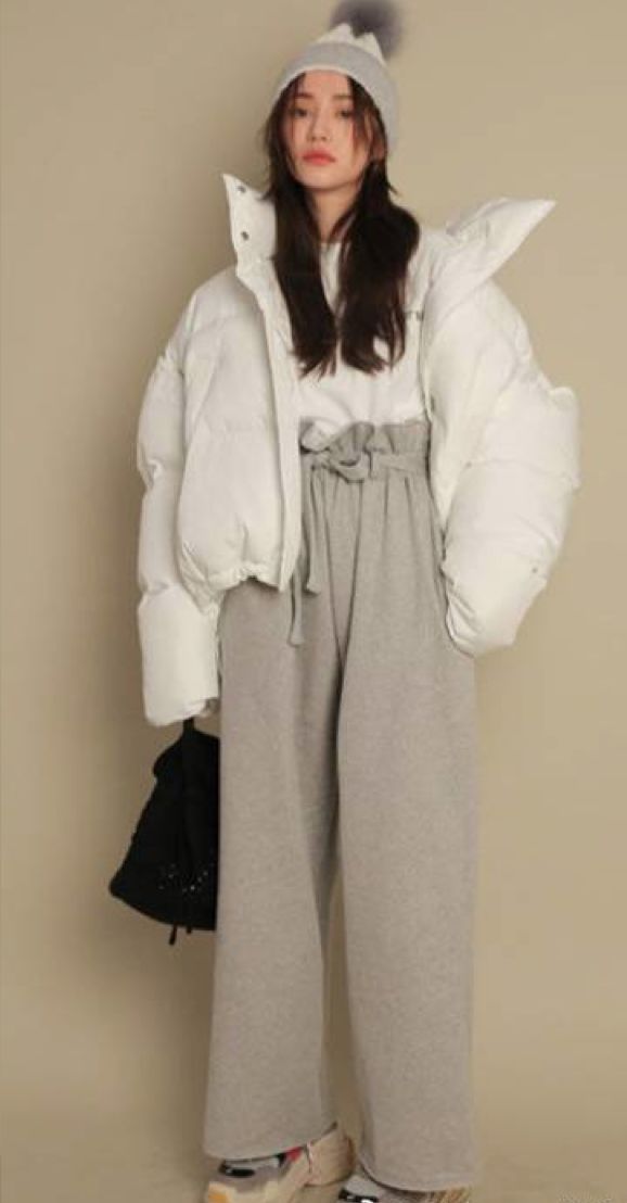 搭配短款寬鬆羽絨服是比較俏皮可愛的
