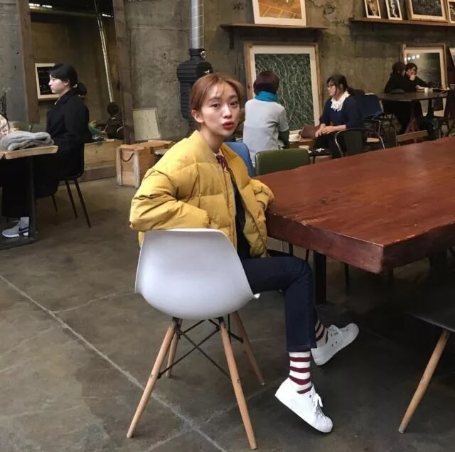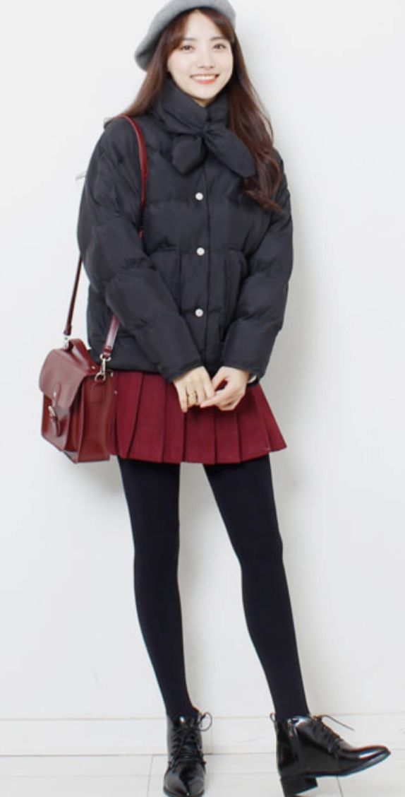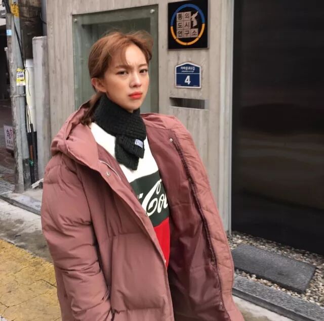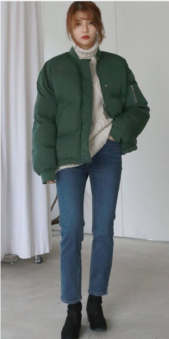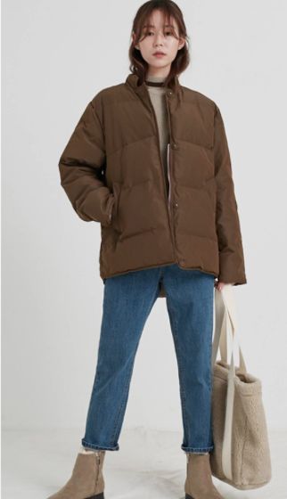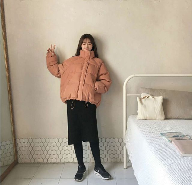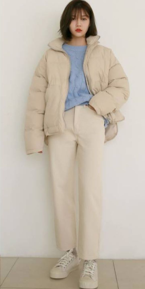 搭配短款寬鬆羽絨服是比較俏皮可愛的