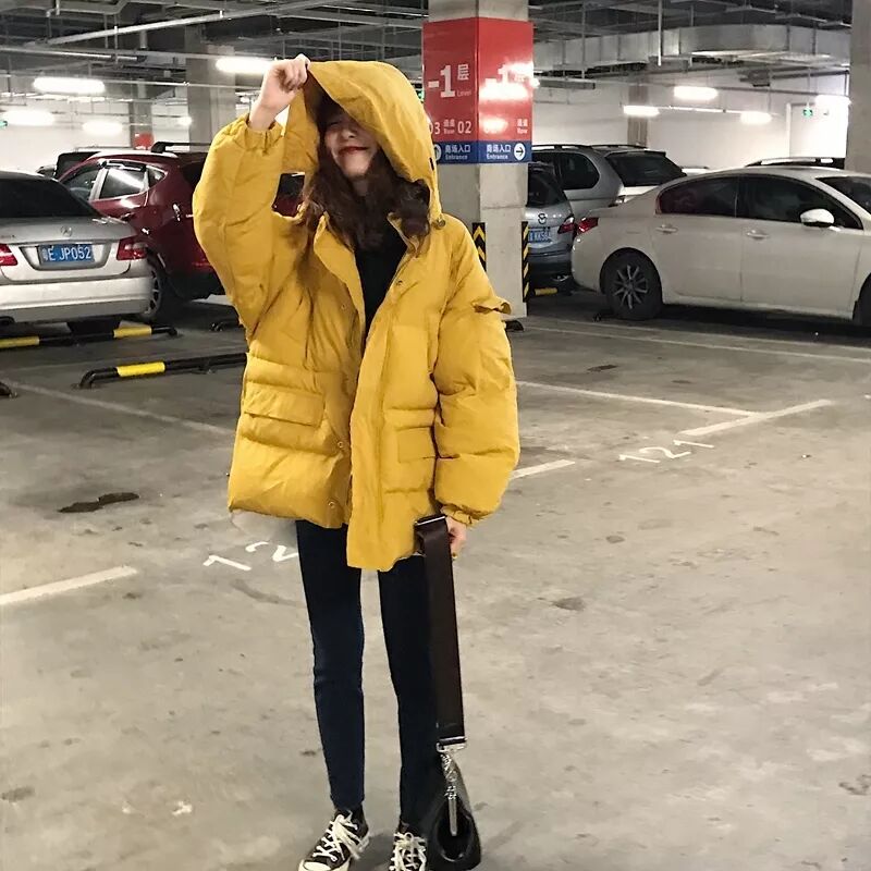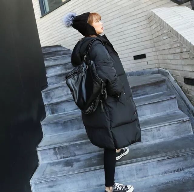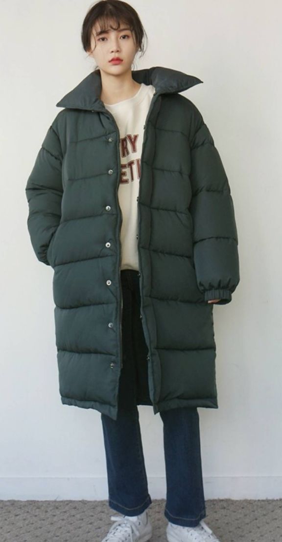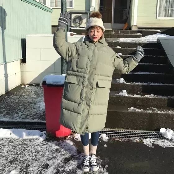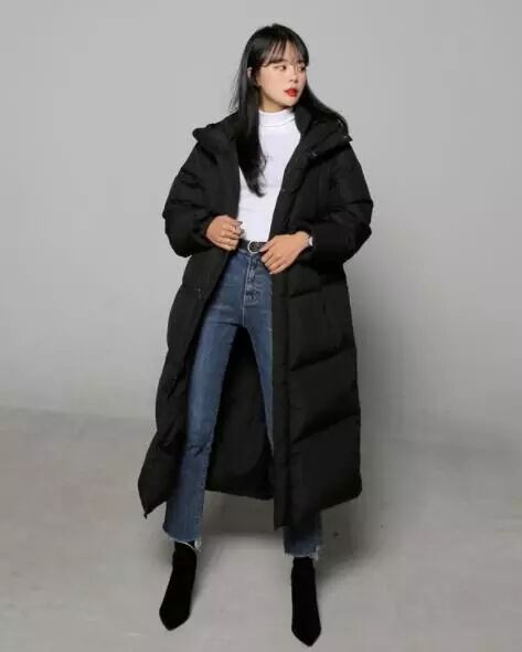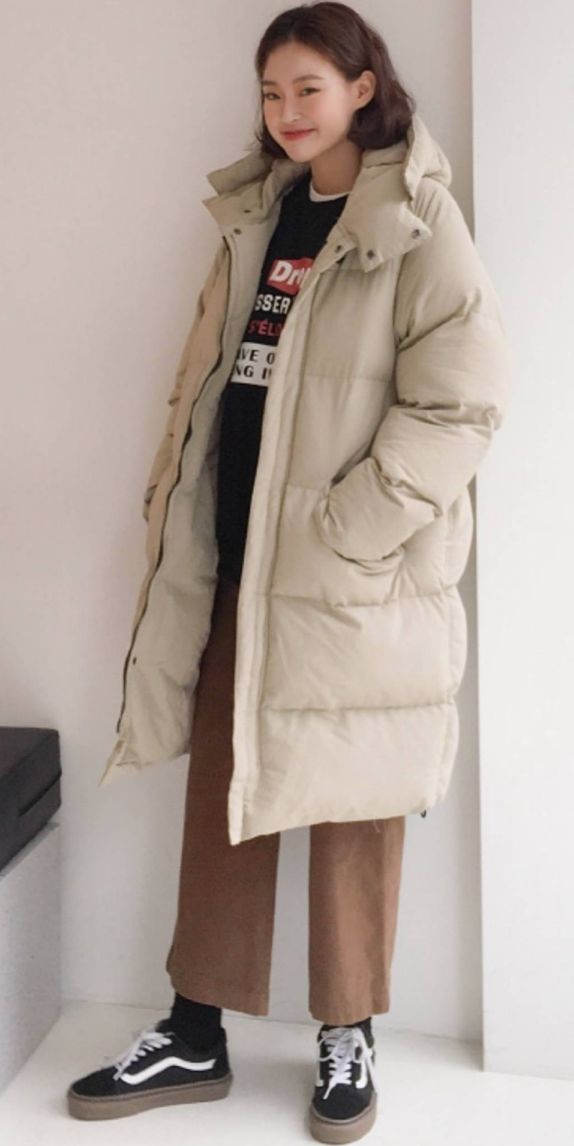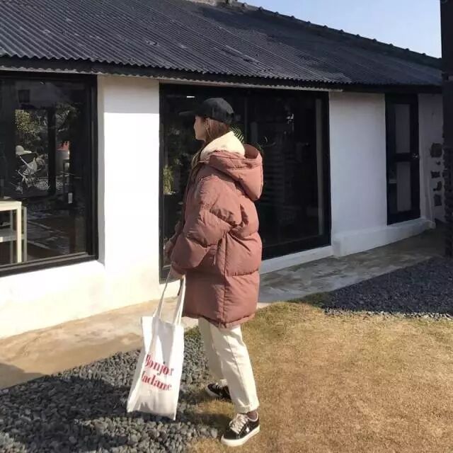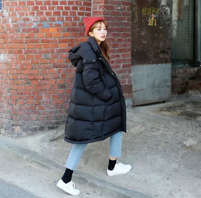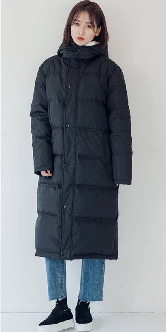 長款的羽絨服更加保暖,搭配帆布鞋或者一腳蹬是比較通勤的~