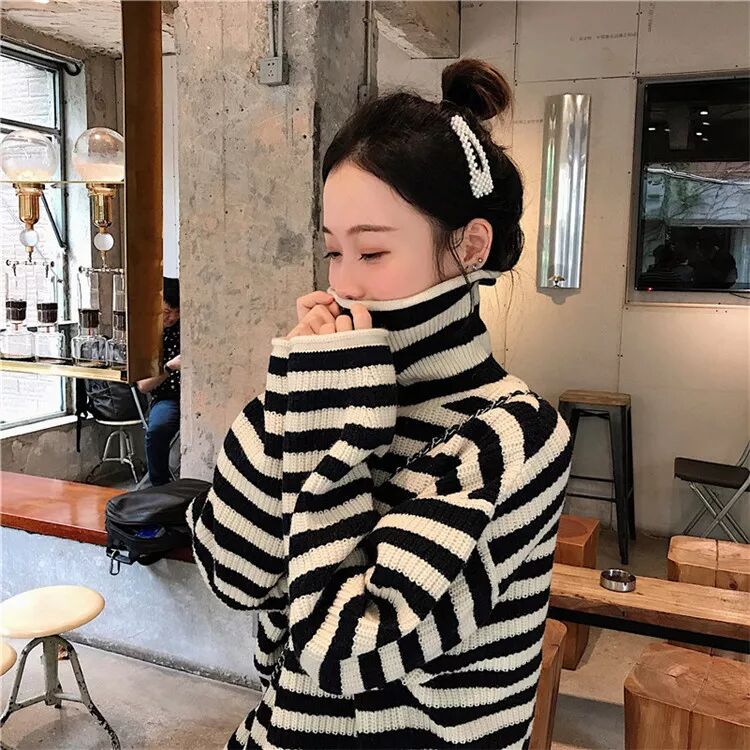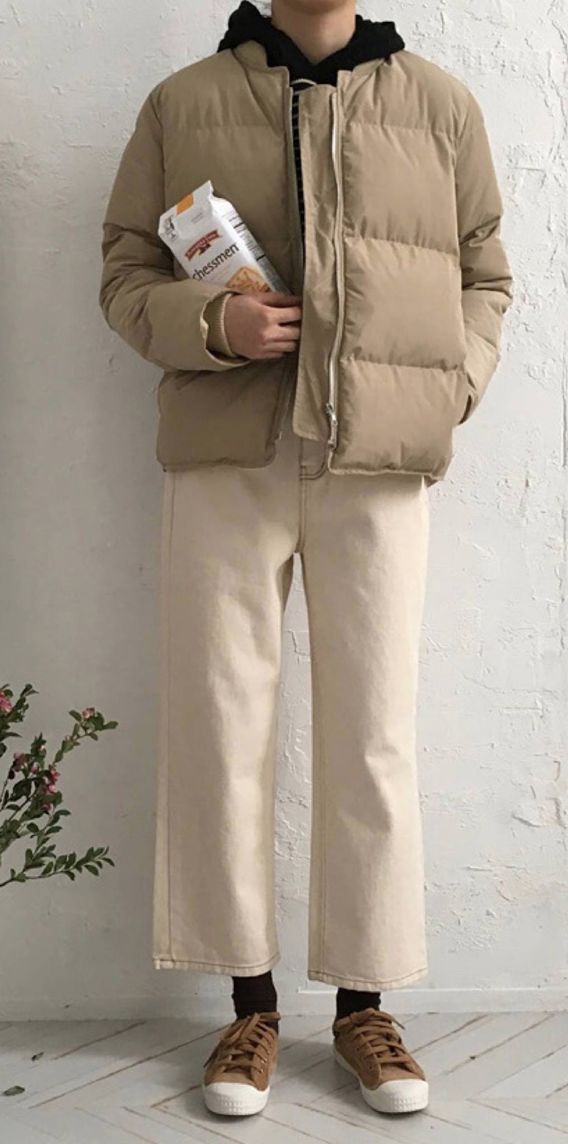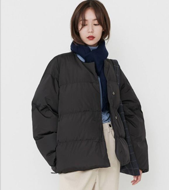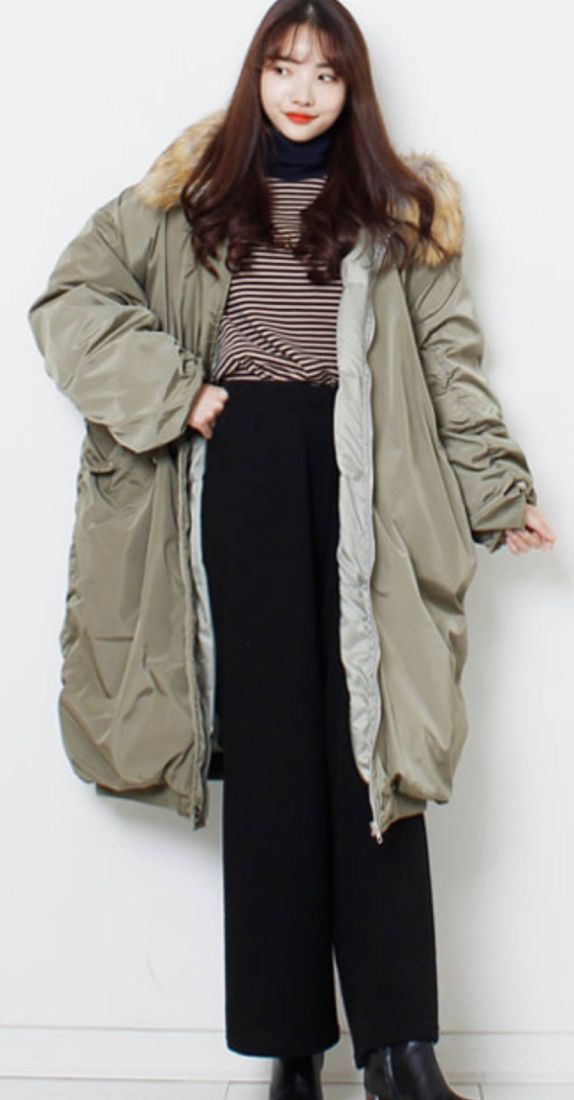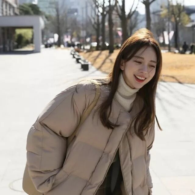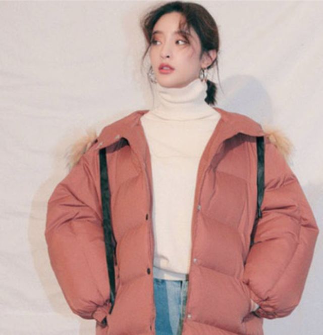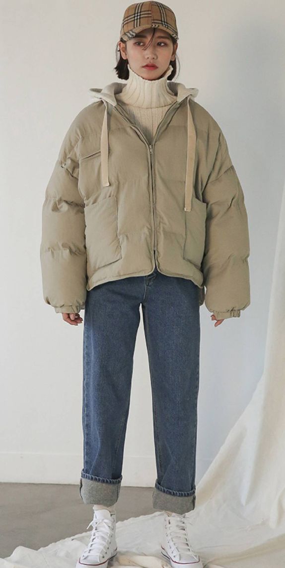 襯衫和高領的疊搭搭配寬鬆的羽絨服也是毫無違和感的