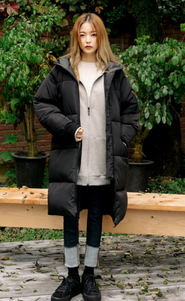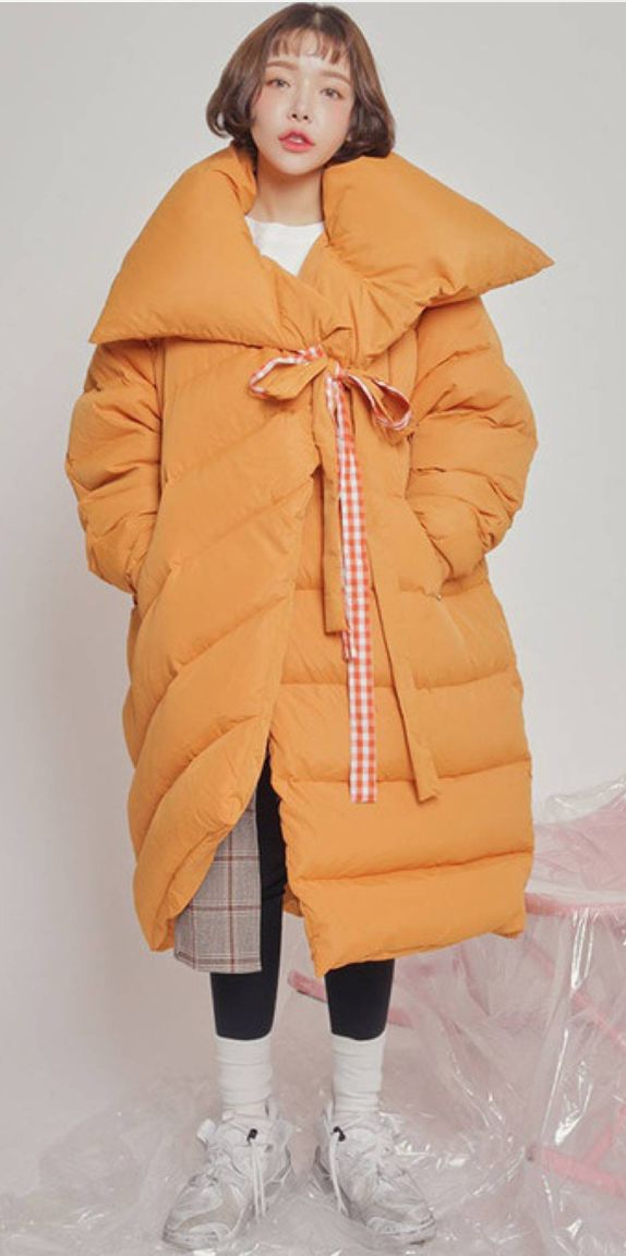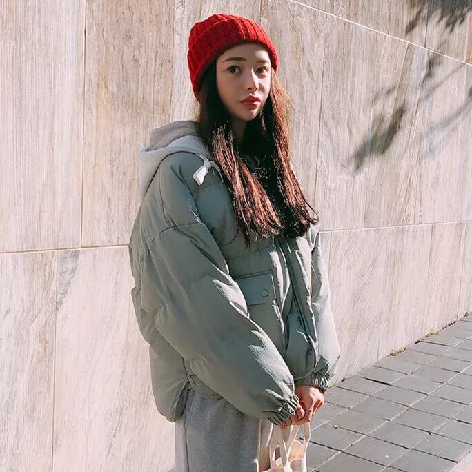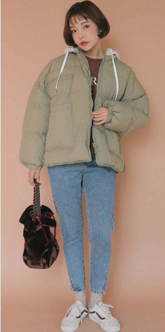 A 型款的羽絨服也可以選擇給人活潑俏皮的感覺~