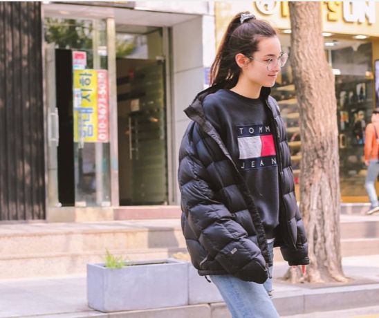 衛衣疊搭長袖T恤搭配寬鬆的羽絨服也是很街頭風的感覺~