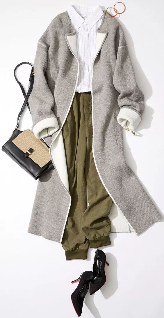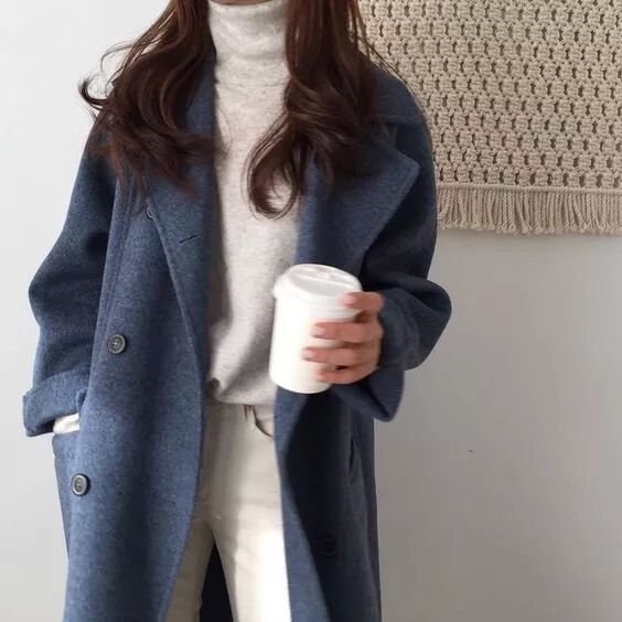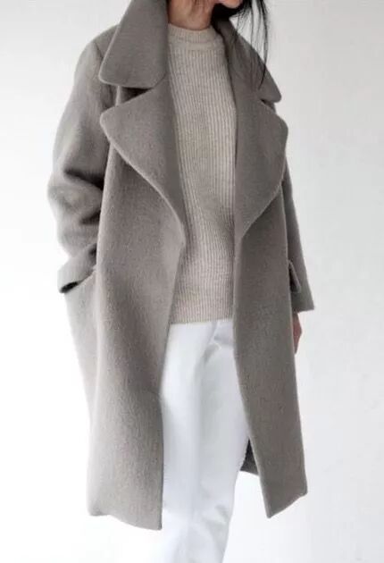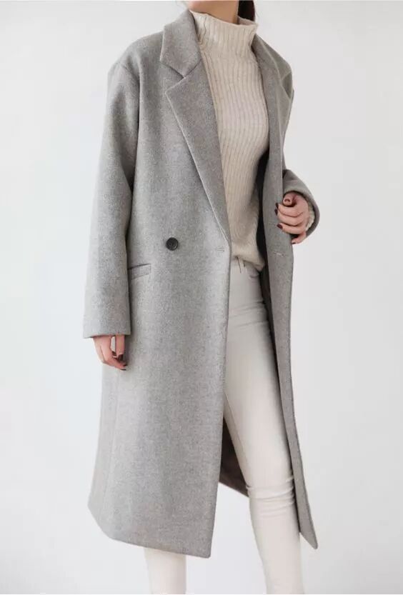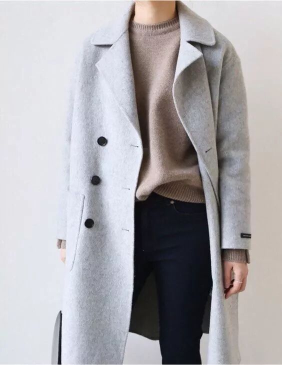 高級灰是秋冬大衣里比較常見的顏色,內搭咖色或者是乳白色毛衣都很顯質感,如果毛衣是oversize款,褲子記得配上收身的仔褲。
