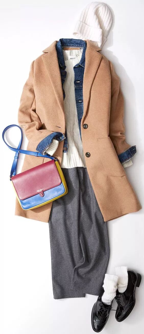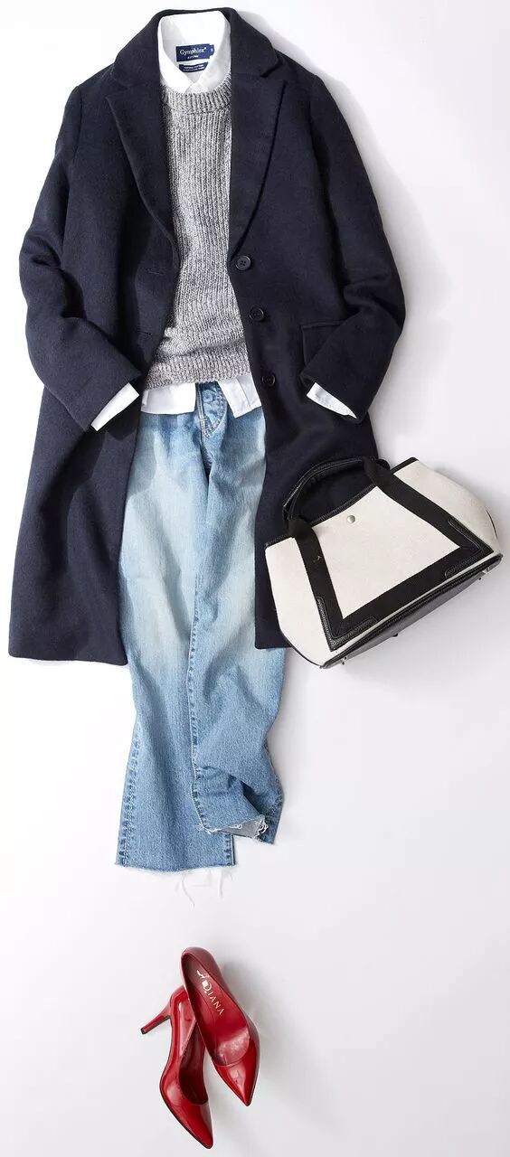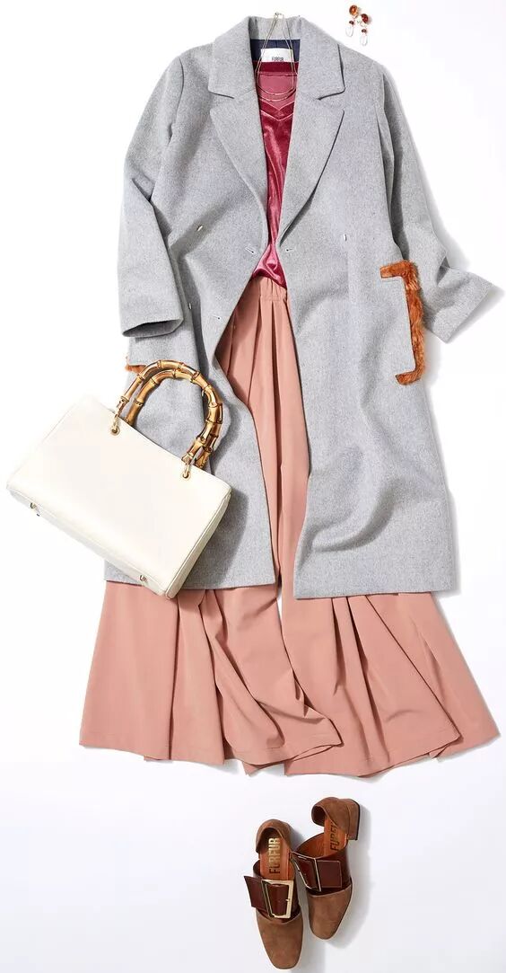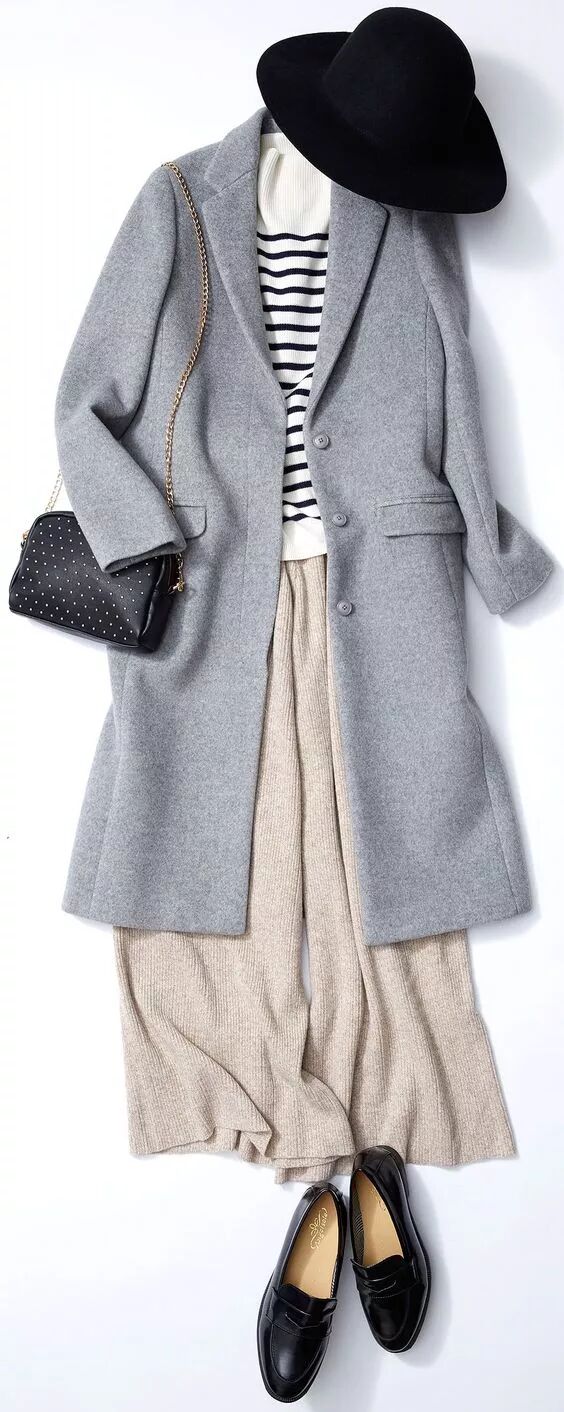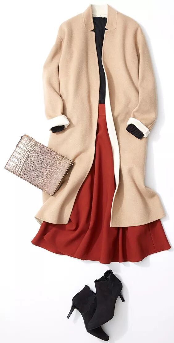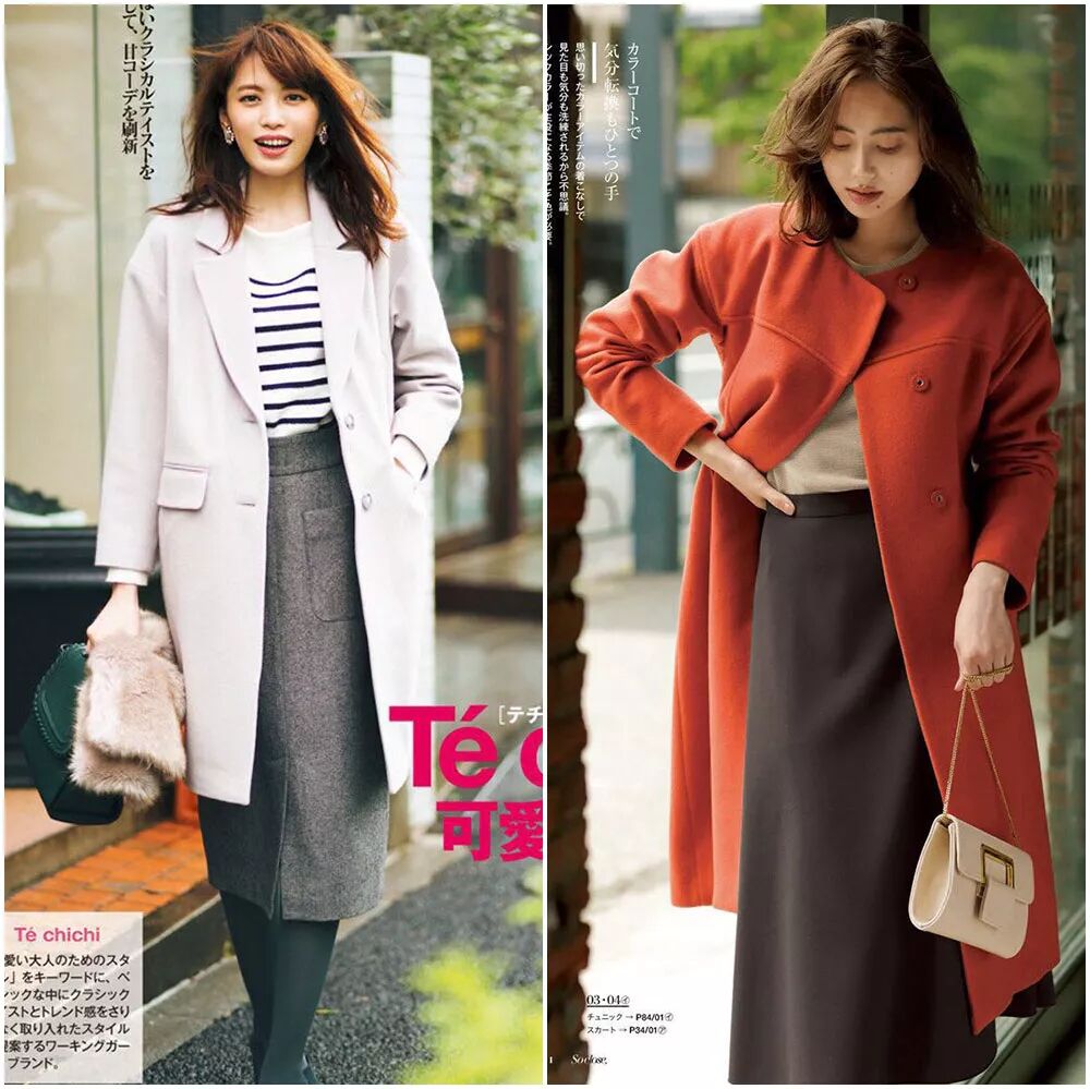 日本許多雜誌上都陸陸續續刊登了各種通勤風的大衣,搭配呢子裙溫柔又大方。