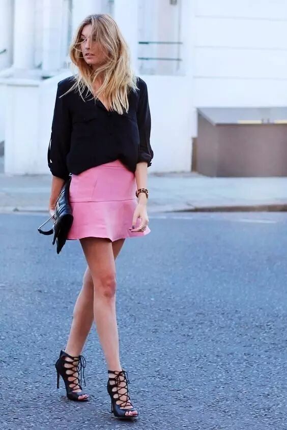 穿粉色半身裙的時候搭配一件白色T恤,真的是簡單又時髦,這也是最不會出錯的穿搭~