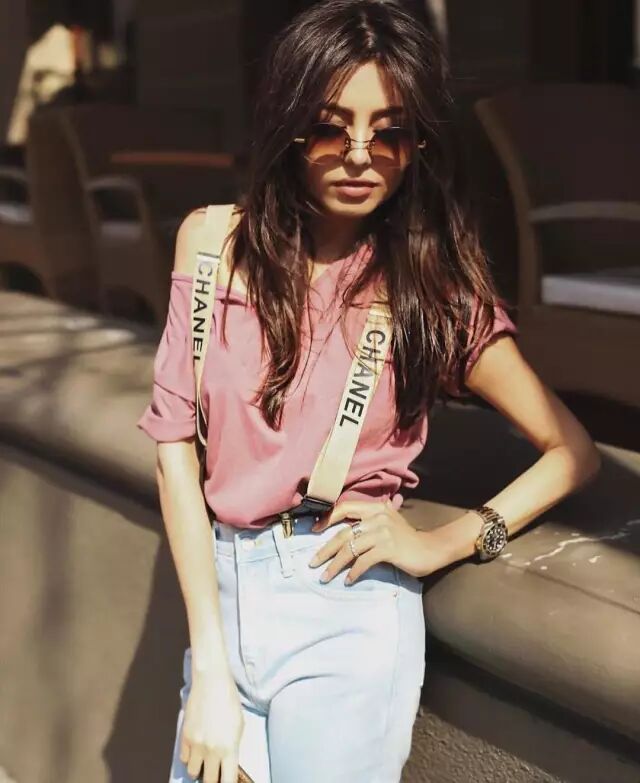 T和牛仔熱褲是每年夏天最火的組合,來件粉T更是甜美可愛~
