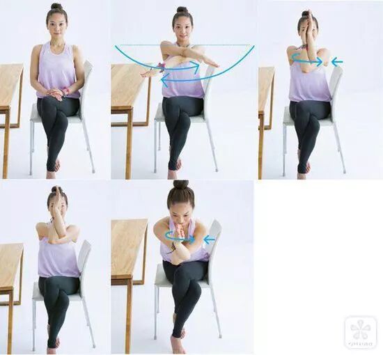 這個動作適合腰背僵硬的人來調整脊柱,借助椅背的幫助來做這個動作能夠讓活動溫和的運動腰腹,還能為內臟做個按摩。