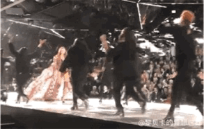 走秀時她不小心被別人踩到背後的「帳篷」,崴了一腳,好險。好在她處理得非常好,迅速恢復過來。不細看,仿佛一點也沒有被干擾到。▼
