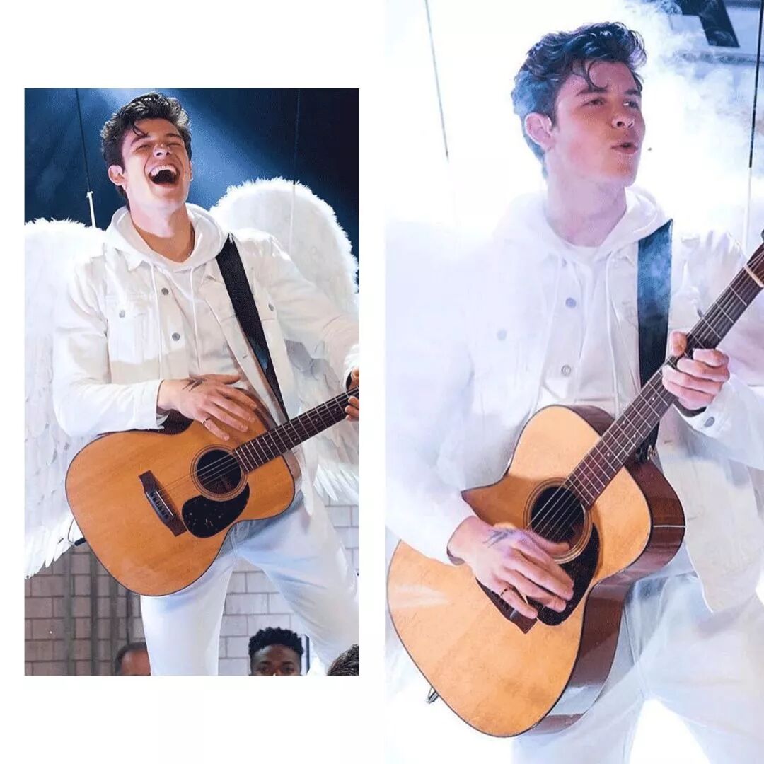 萌德 Shawn Mendes 身背雪白的翅膀,開心的像個孩子。