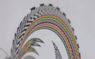 藍黑色的羽毛組合成花的形狀,