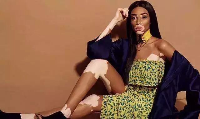 她因為患有白癜風,皮膚顏色黑白交錯,綽號「奶牛超模」。