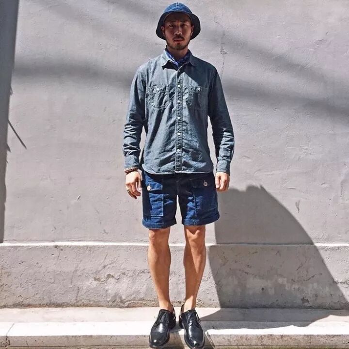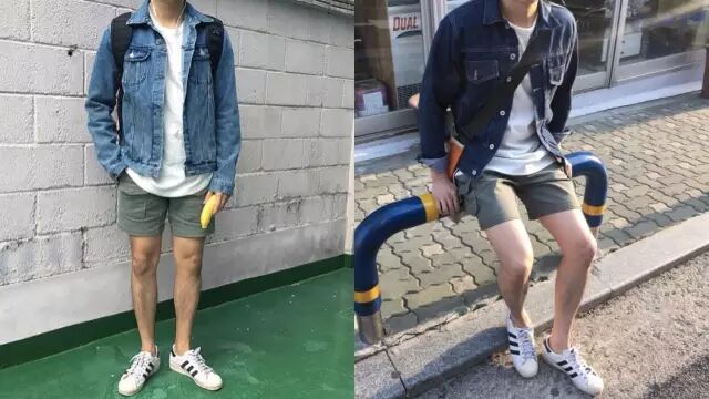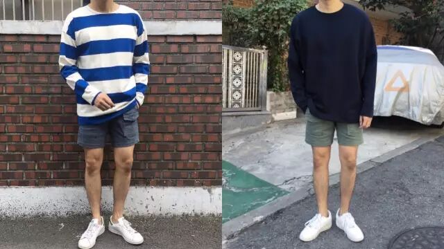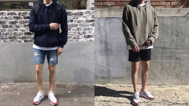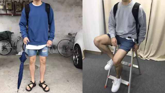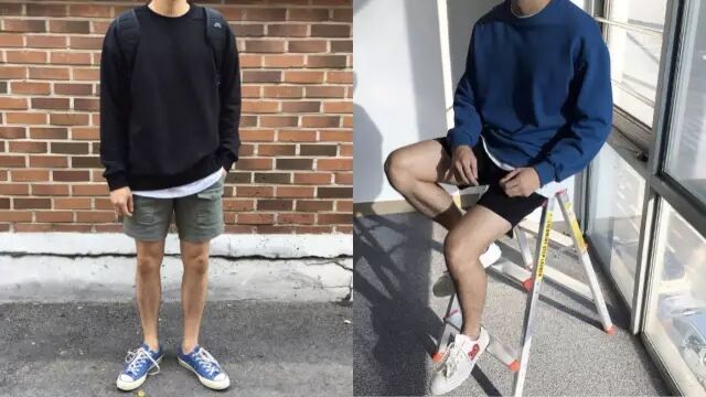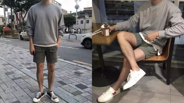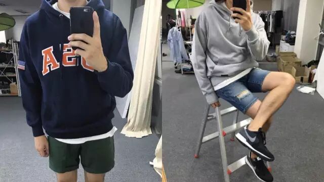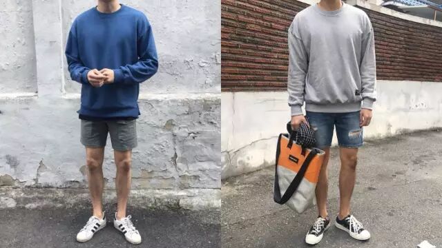 用柔和的圓領衛衣+質地廓形都比較硬朗的短褲能很好的達到平衡:
