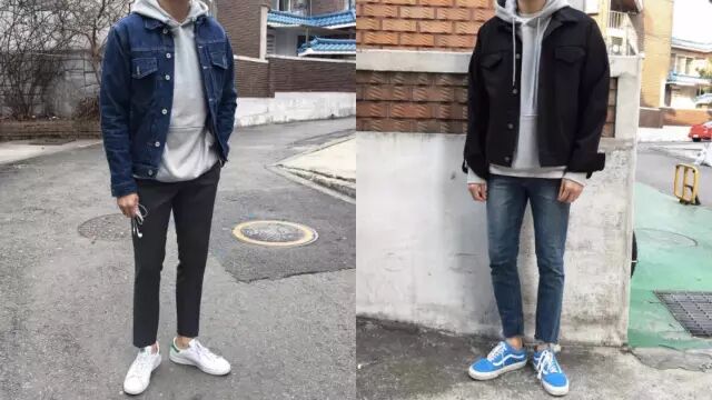 如果天氣變的再冷一些,你可以在外套里面用一件連帽衛衣做內搭: