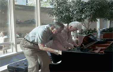 這天他們走進一家餐廳,發現了一架鋼琴,兩人一拍即合,像孩子一樣玩兒了起來,逗得彼此哈哈大笑。
