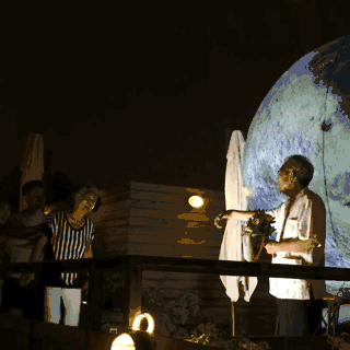 中秋夜,他偷偷為老伴兒準備了一個超大的月亮氣球,穿著整潔的中山裝,手拿捧花,站在「月亮」下笑意盈盈地看著她。