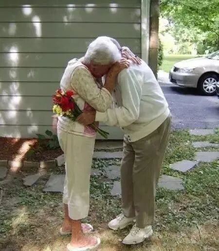 結婚60周年紀念日,他為她采了一束花,她卻忍不住趴在他肩頭哭了。