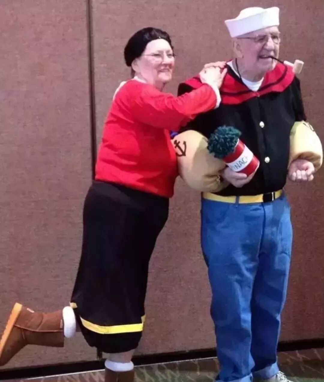 誰說老年時光無聊且頹廢? 這對有愛的老夫婦打扮成大力水手,正一起參加動漫大會。