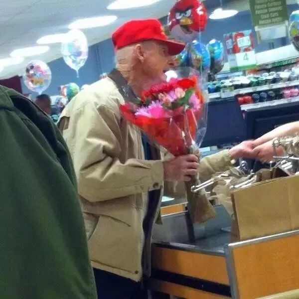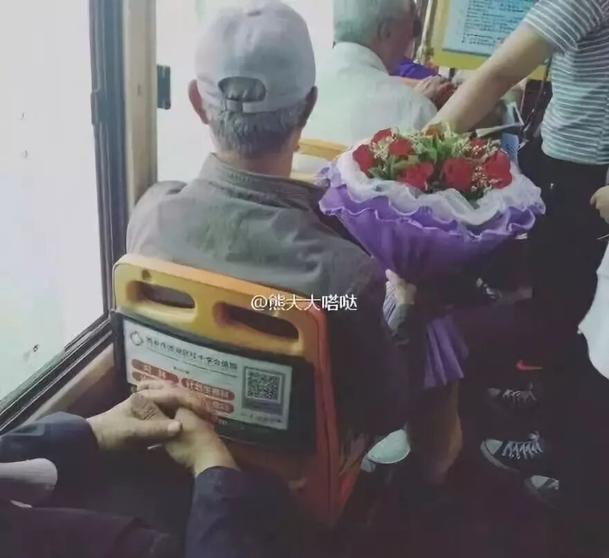 情人節,在公車上看到一位老伯,小心地捧著一大束玫瑰花,他有些不好意思地笑著說:「妻子喜歡花,這是給她的。」