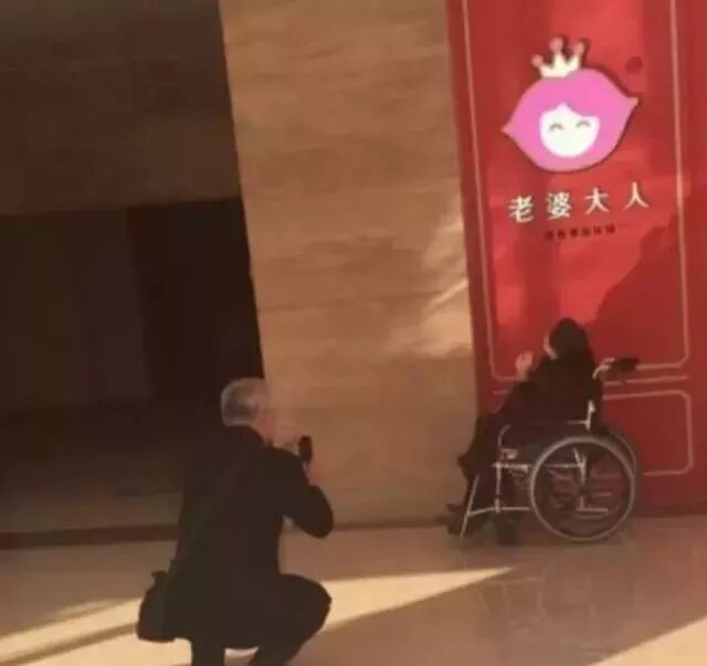 麗水的一家商場,一位老爺爺正在給「老婆大人」拍照。