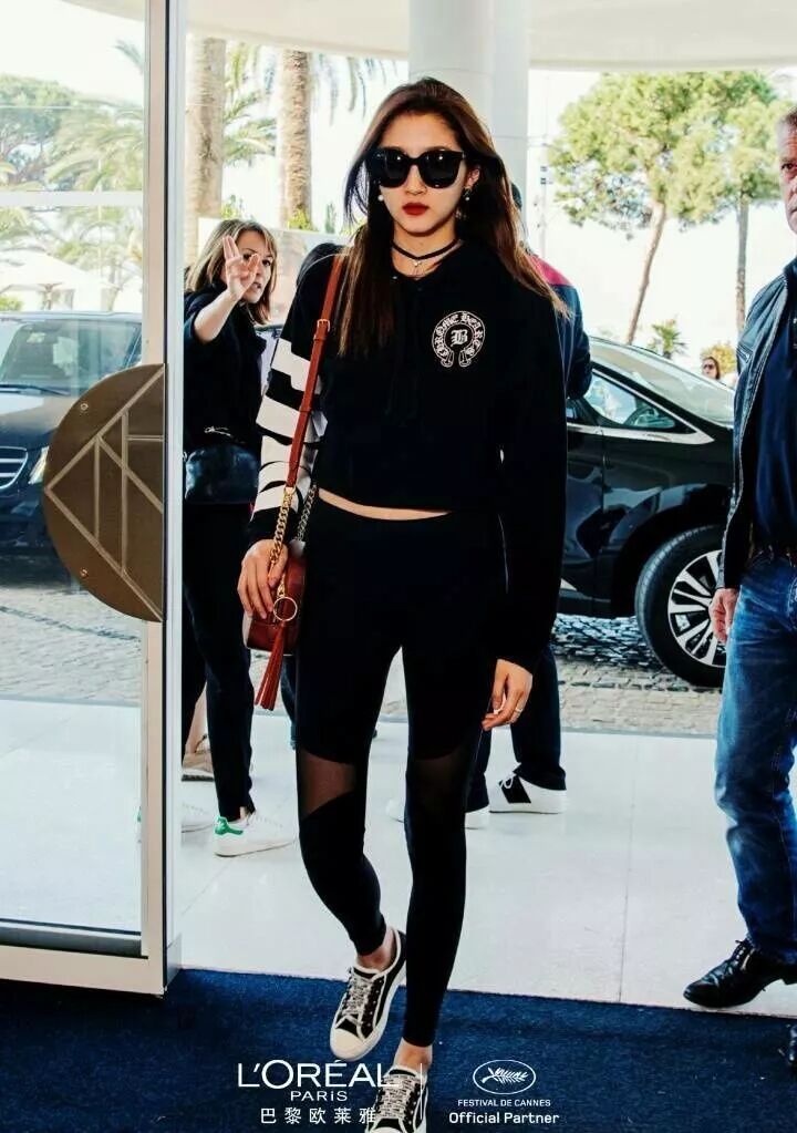 黑色的衣服看著特別的魅力,下半身穿了一件黑色的緊身褲,這樣看起來特別的有氣場了,因為腿看著非常的長了。