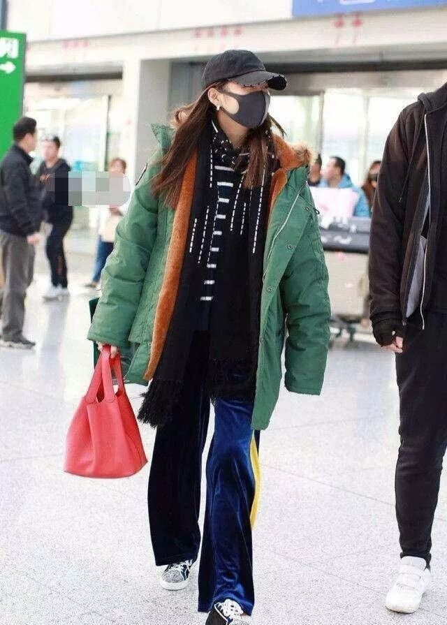 上半身的藍色外套里面還穿了一件綠色的衛衣,這樣看起來意外的還挺好看的呢,還特別的時髦,網友:比以前還時髦!