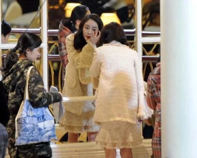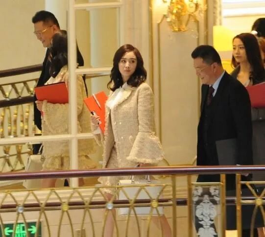 大庭觀眾之下,對著鏡子整理妝容,看來不拘小節的楊冪,與普通人沒有什麼大差別。楊冪身穿一套成熟的米色套裝,超級洋氣。