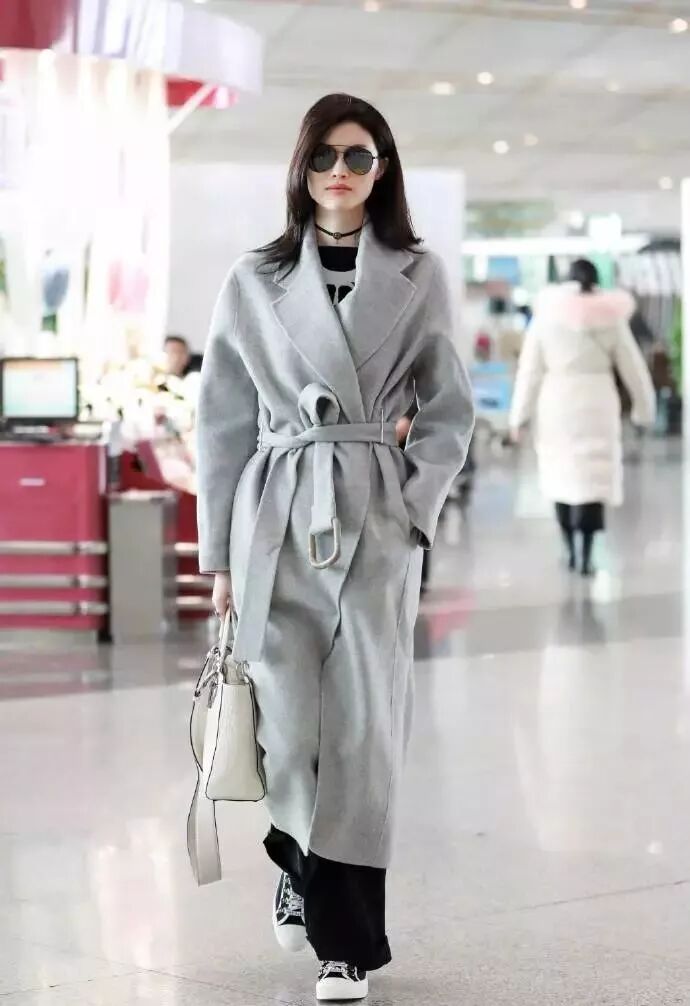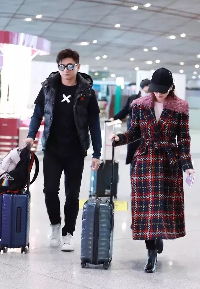 劉詩詩吳奇隆兩人現身機場,劉詩詩身穿一件格子大衣,九分的長度沒有顯得很厚重。