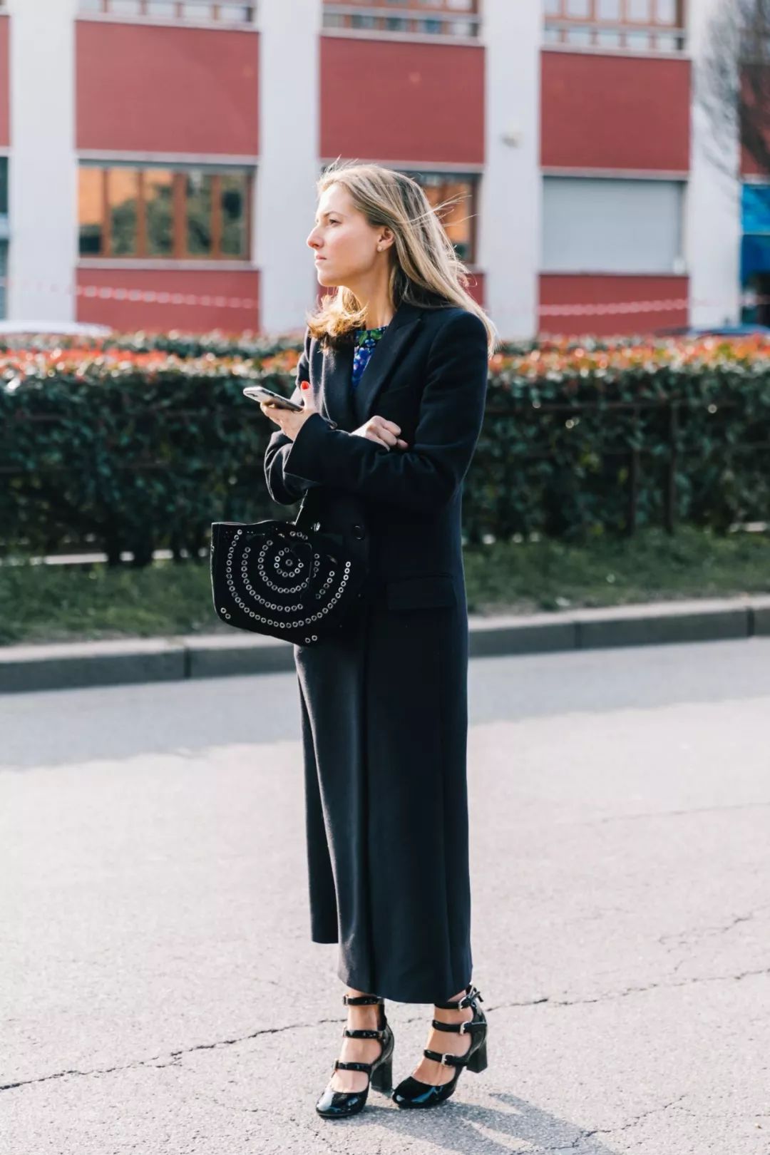 苗條的身材,超級需要這樣一件修身款九分大衣來凸顯,配上一款瑪麗珍鞋,超復古超文藝了!!