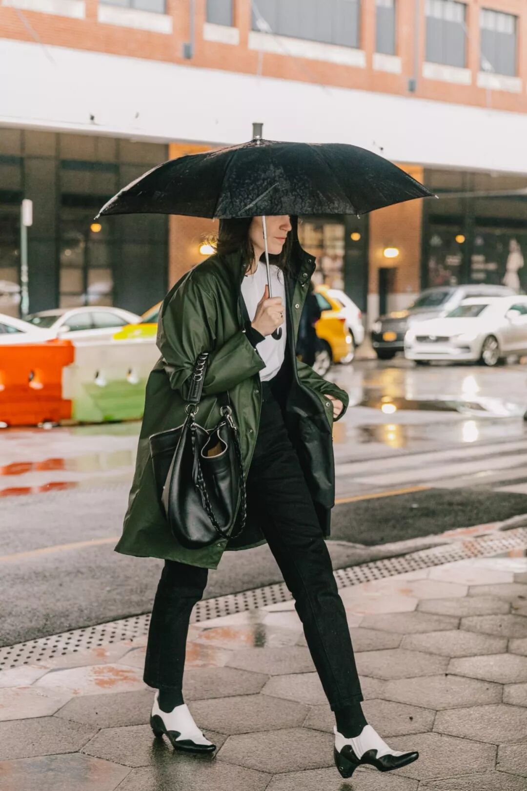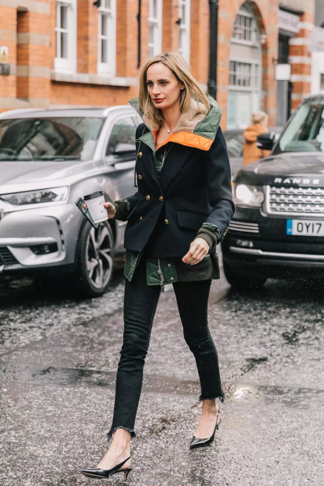 軍綠色的派克大衣,顯白顯氣質,這時候穿上一條小黑褲,既不會搶了風頭,又能夠很好的凸顯英氣質感~