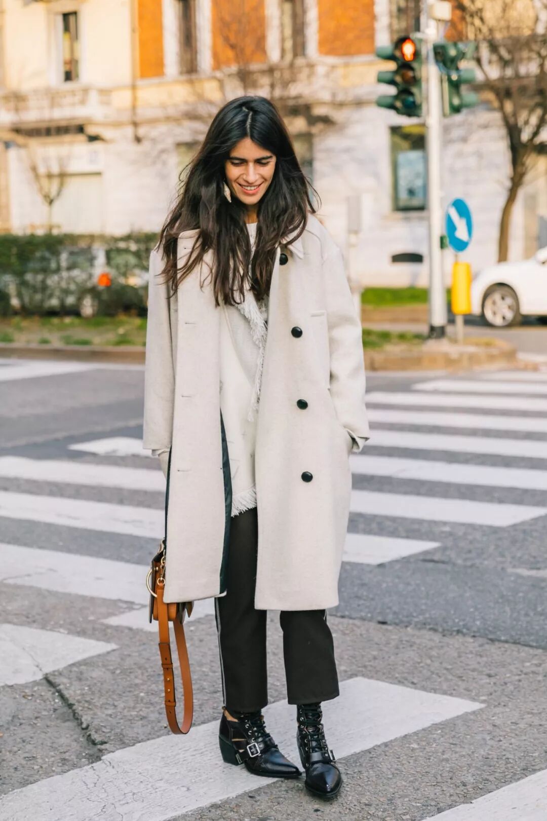 米白色的呢大衣超級無敵顯氣質,搭配一雙切爾西靴,簡簡單單就可以出行了~