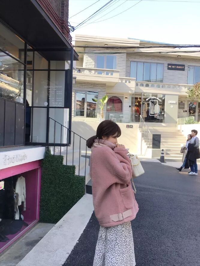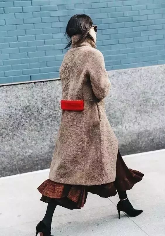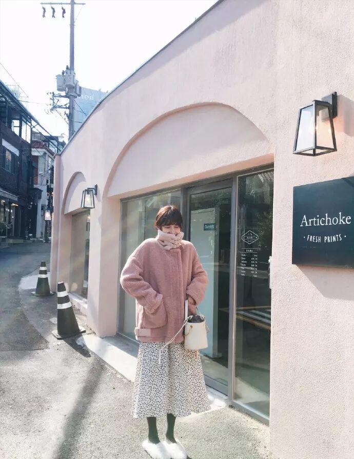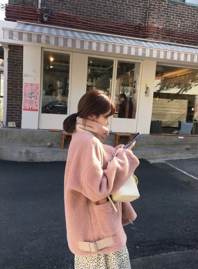 再來,還可以選擇羊羔毛外套,軟萌軟萌的感覺,說的就是這種搭配了。