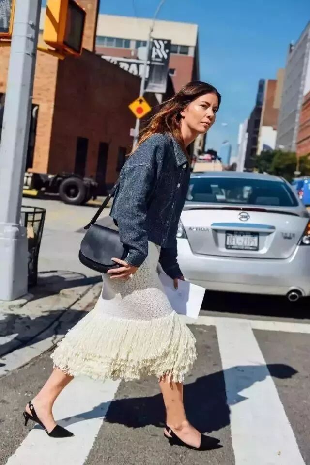 如果溫度再低一點,那麼針織衫可能抗風抗寒能力就不太夠了。這時候就可以考慮其他外套了,比如牛仔。