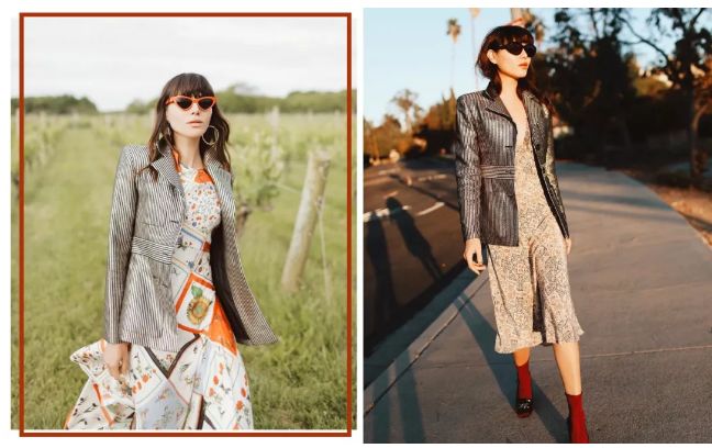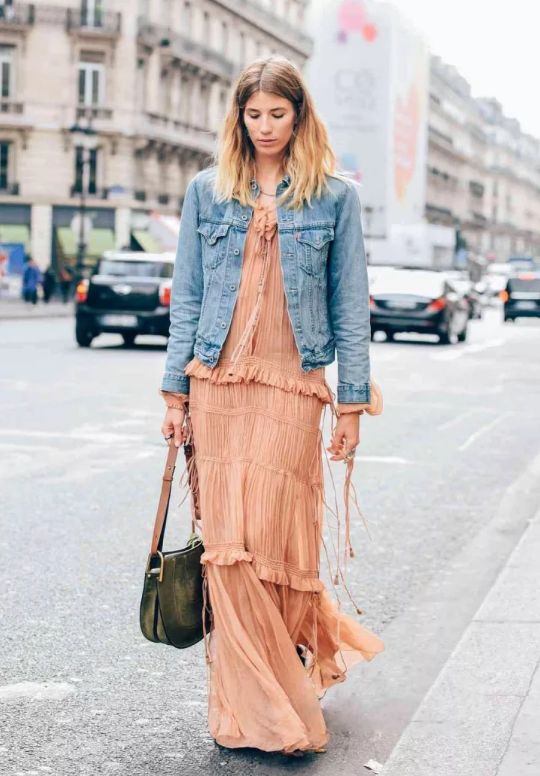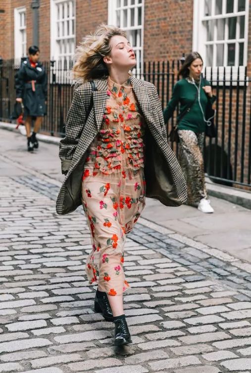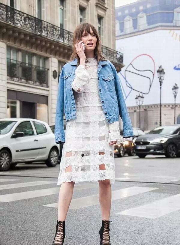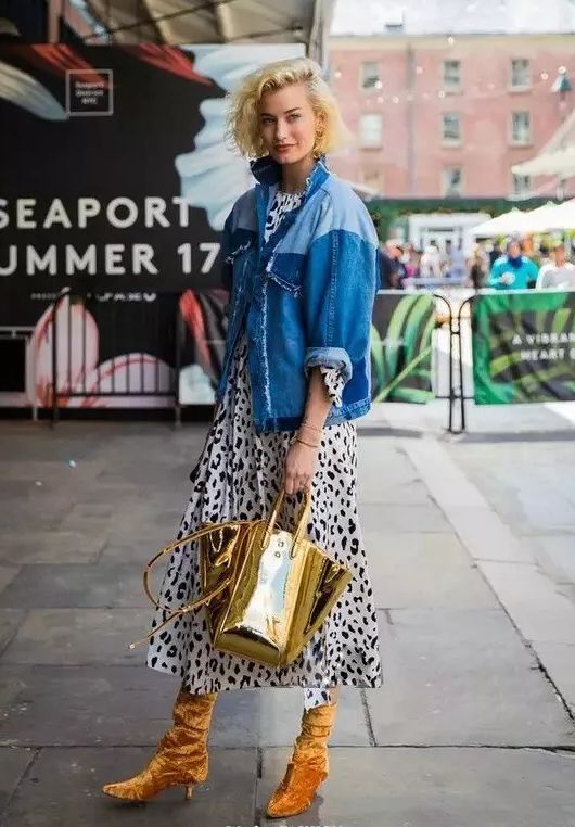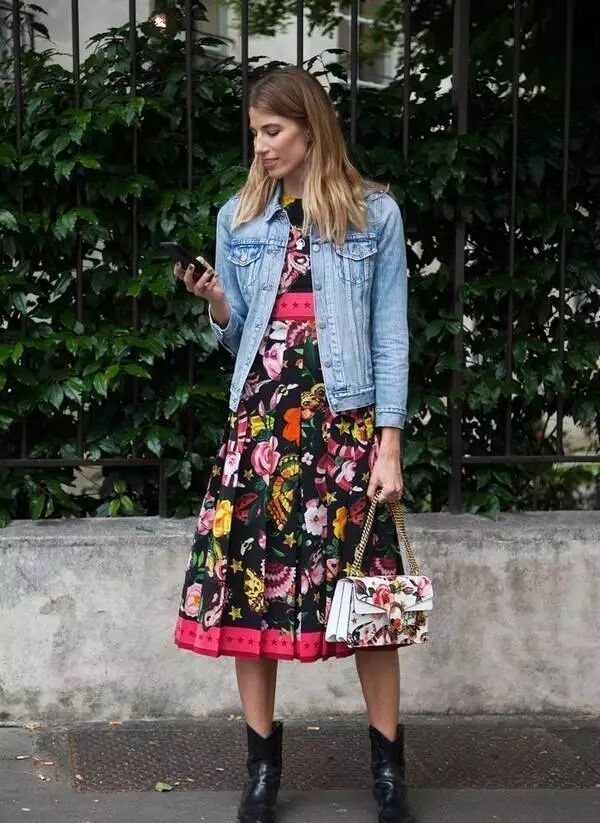 牛仔外套和連衣裙也是真的配,很多明星達人都這樣穿。而且連衣裙越花搭配出的效果就越好看。