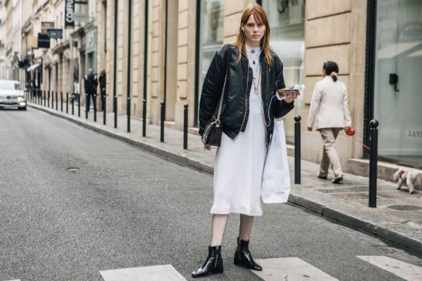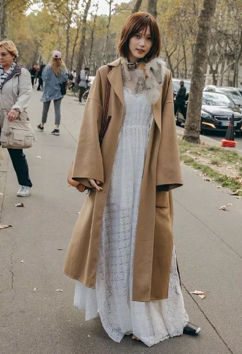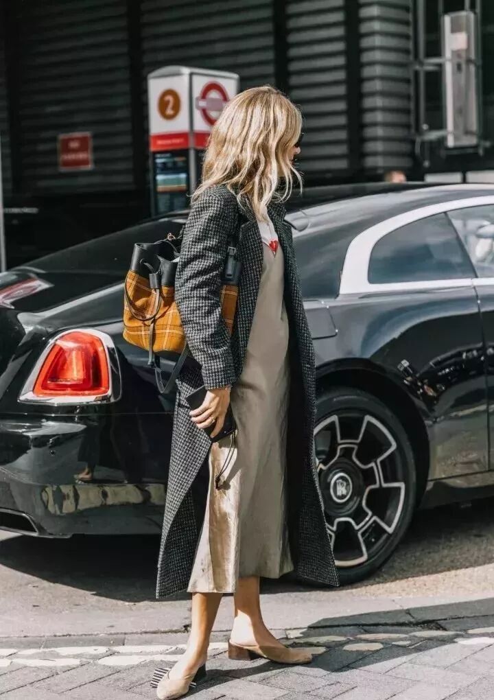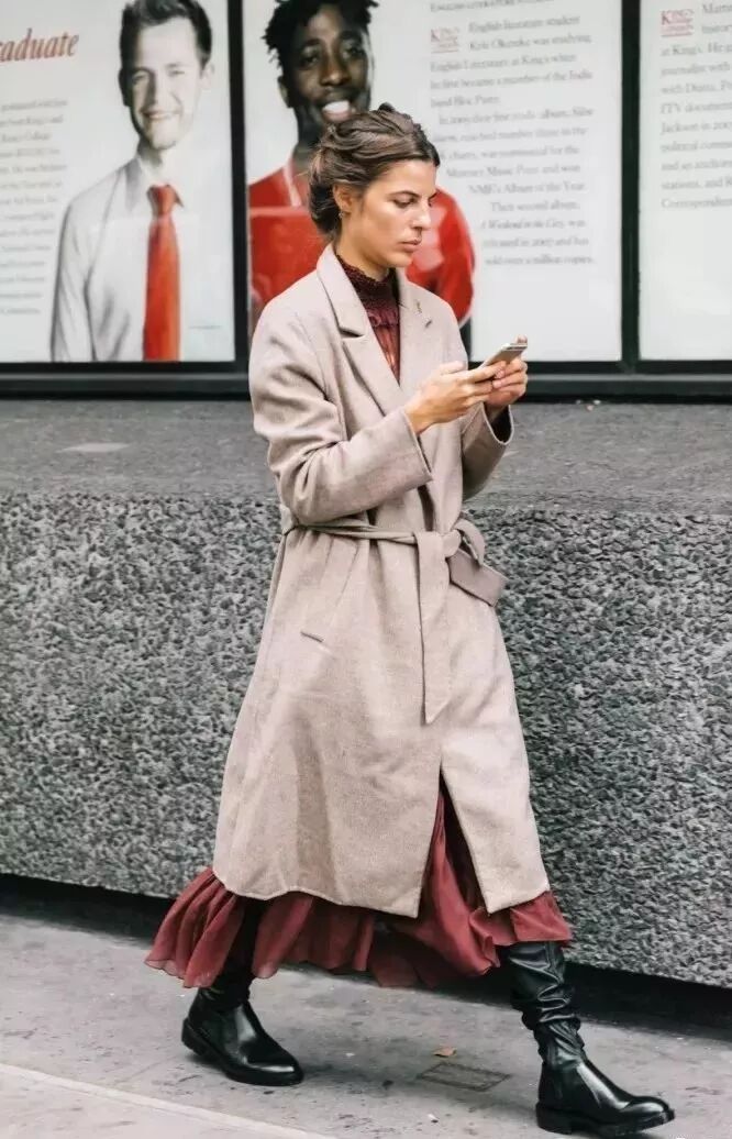 像是大衣搭配連衣裙的組合在街拍中就非常常見,基本上算是一個不用想就能get的傻瓜式搭配。