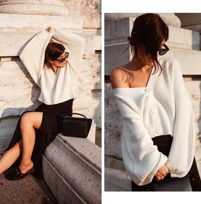 選擇v領的能夠修飾臉型和脖子線條,讓這種初秋的慵懶感覺更加濃鬱!