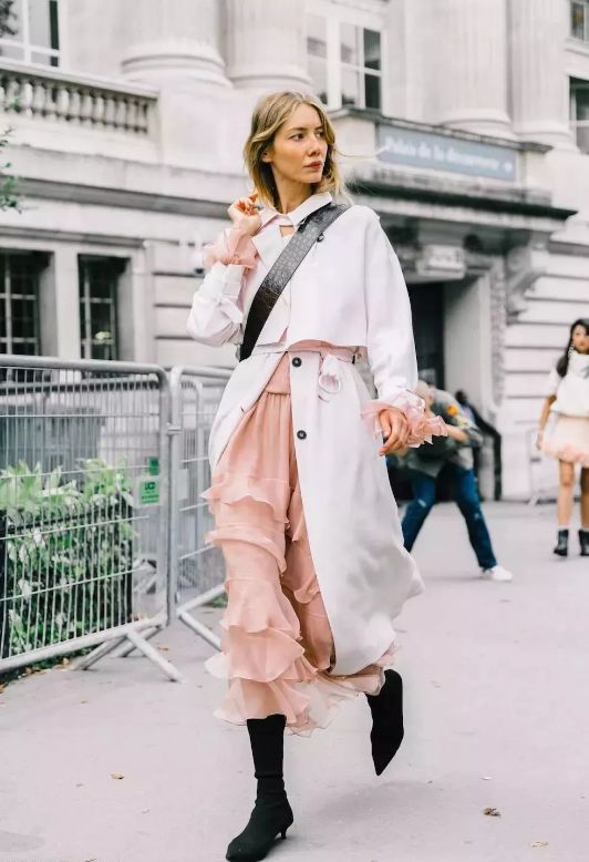 最美不過仙女裙,而它與風衣的搭配,不僅保留仙女裙的優雅和仙氣,還能帶有風衣的幹練、大氣。