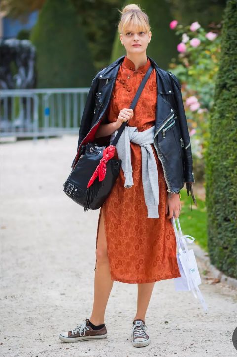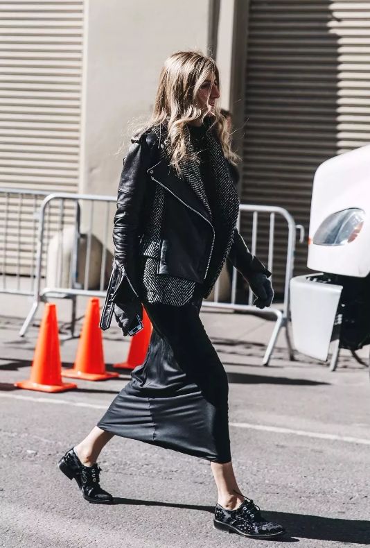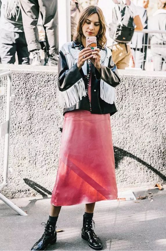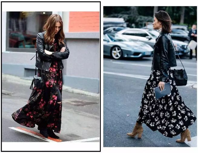皮衣和裙子可謂是混搭界的鼻祖,硬朗的皮革和飄逸的裙身形成對比,輕鬆吸引眼球哦。