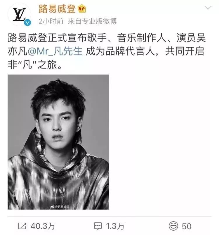 別忘了Louis Vuitton在10月31日才官宣吳亦凡為其品牌代言人。
